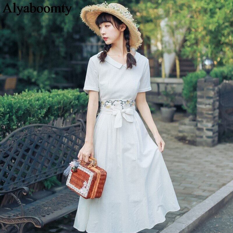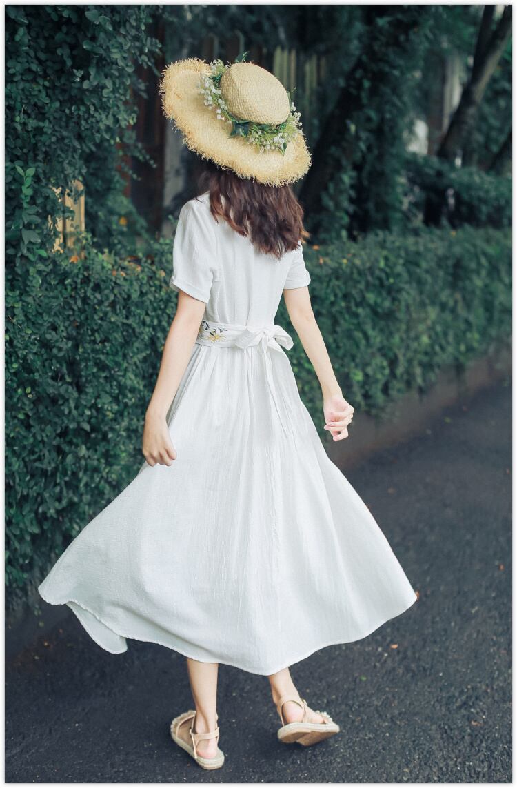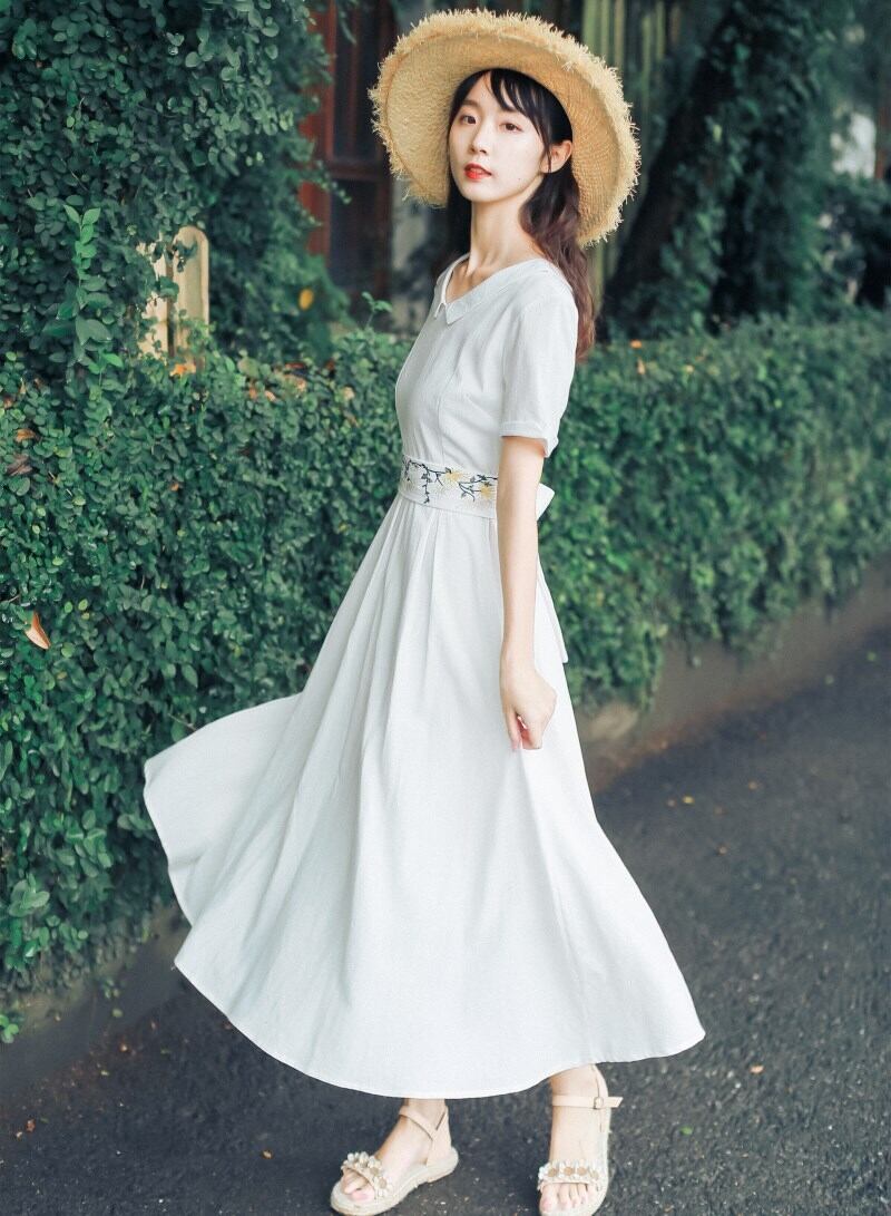 送料無料୨♥୧ サマーレディースロングホワイトドレス カラーヴィンテージフローラル刺繍ドレス ワンピース コットン 大人ガーリー スウィート キュート カジュアル 夏物 花柄 ビンテージ AOS96517015106