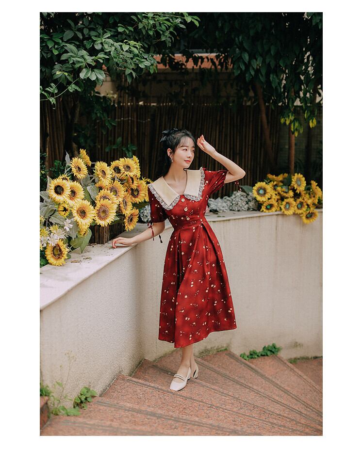 送料無料୨♥୧ サマーレディースドレス カラーレースフローラルプリント半袖スリーブ ショート ハーフスリーブ 大人ガーリー スウィート キュート カジュアル 夏物 花柄 AOS17581840006