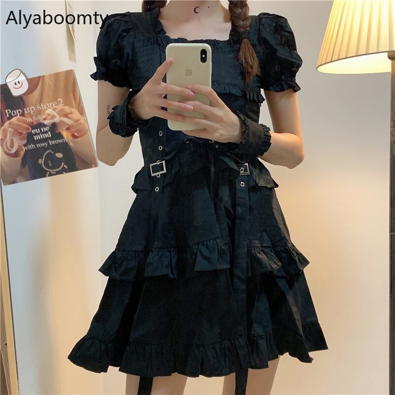 送料無料୨♥୧ レディースブラックフリルドレス スタイルバンドミニ ラッフル 大人ガーリー スウィート キュート カジュアル かわいい AOS47177365320