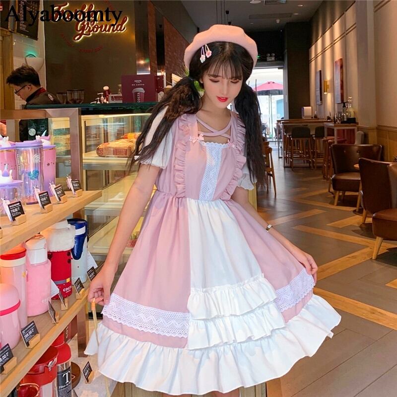 送料無料୨♥୧ サマーレディーススタイルドレス クロスホワイトフリルリボンレース ピンク ラッフル 大人ガーリー スウィート キュート カジュアル 夏物 AOS71866734148