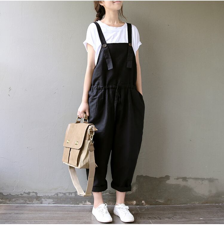 送料無料୨♥୧ サマーオータムレディースロンパース オールインワン ブラックバンドルーズオーバーオール ワイドレッグジャンプスーツ オールインワン コットン 大人ガーリー スウィート キュート カジュアル 夏物 秋物 ワイドパンツ AOS20050727117