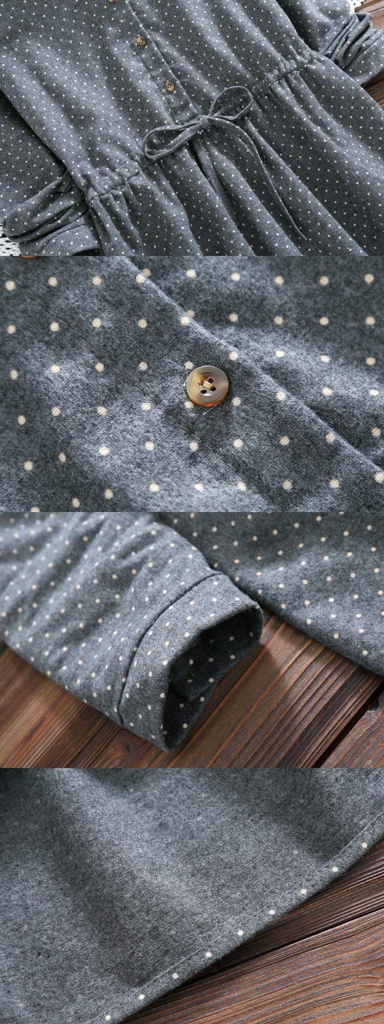 送料無料୨♥୧ スプリングオータムレディースドレス スタンドカラーカラー水玉フェミニーズスリーブヴィンテージ コットン 大人ガーリー スウィート キュート カジュアル 春物 秋物 ビンテージ AOS54331060528