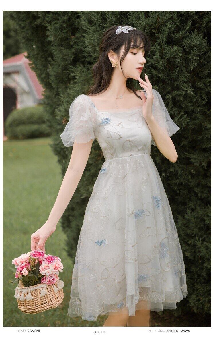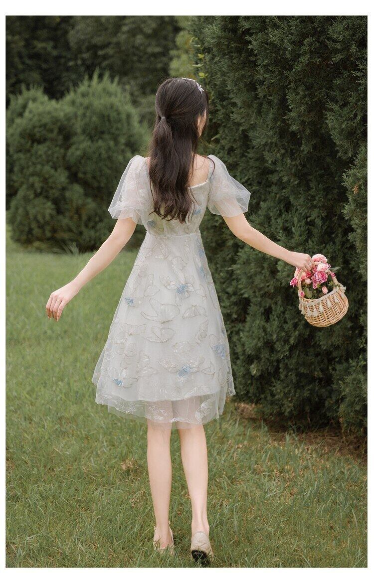 送料無料୨♥୧ サマーレディースドレス カラー刺繍Butterflyデザイン スリーブメッシュドレス ワンピース 夏物 スクウェア AOS41818274469
