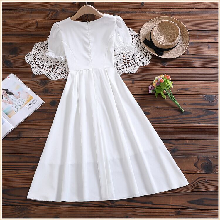 送料無料୨♥୧ サマーレディースロングドレス カラーホワイト半袖スリーブミディ ショート ハーフスリーブ 大人ガーリー スウィート キュート カジュアル 夏物 AOS61290695137