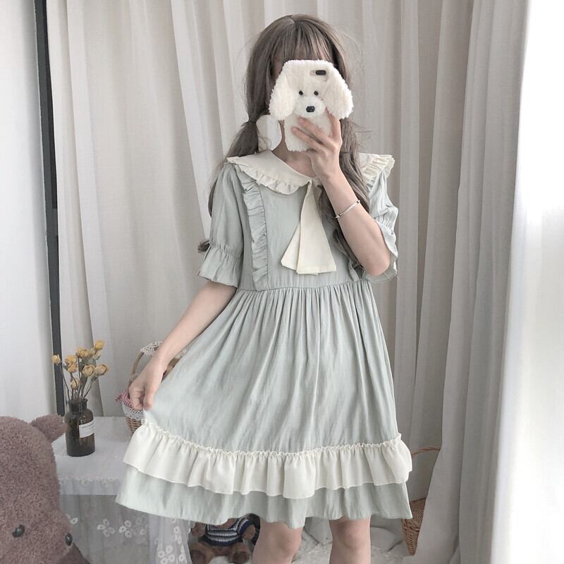 送料無料୨♥୧ スタイルサマーレディースドレス カラーリボン半袖スリーブフリル ショート レッド ハーフスリーブ ラッフル 大人ガーリー スウィート キュート カジュアル 夏物 AOS33821438821
