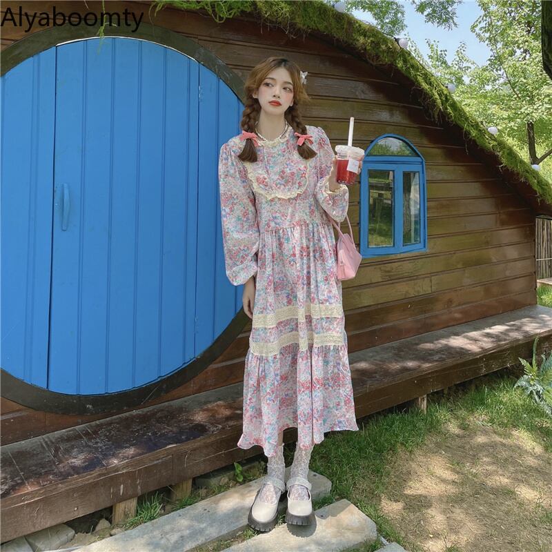 送料無料୨♥୧ オータムレディースミディドレス カラーフローラルプリントフリル ラッフル 大人ガーリー スウィート キュート カジュアル 秋物 花柄 AOS88475137588