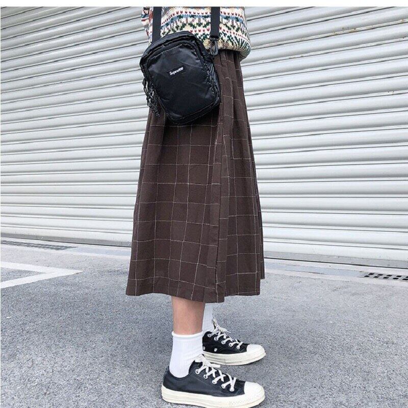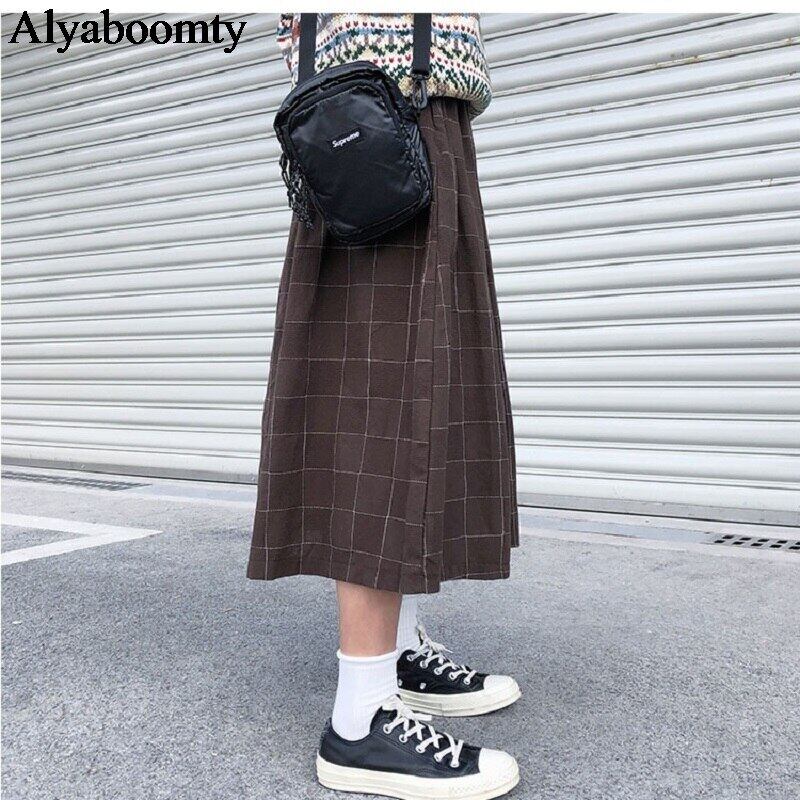 送料無料୨♥୧ スタイルオータムウィンターレディースミディスカート ウェストブラック格子柄ヴィンテージロング 秋物 冬物 ビンテージ AOS33678069419