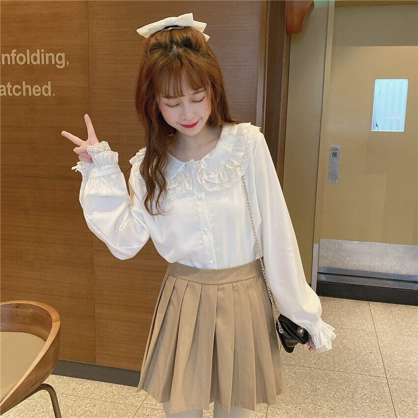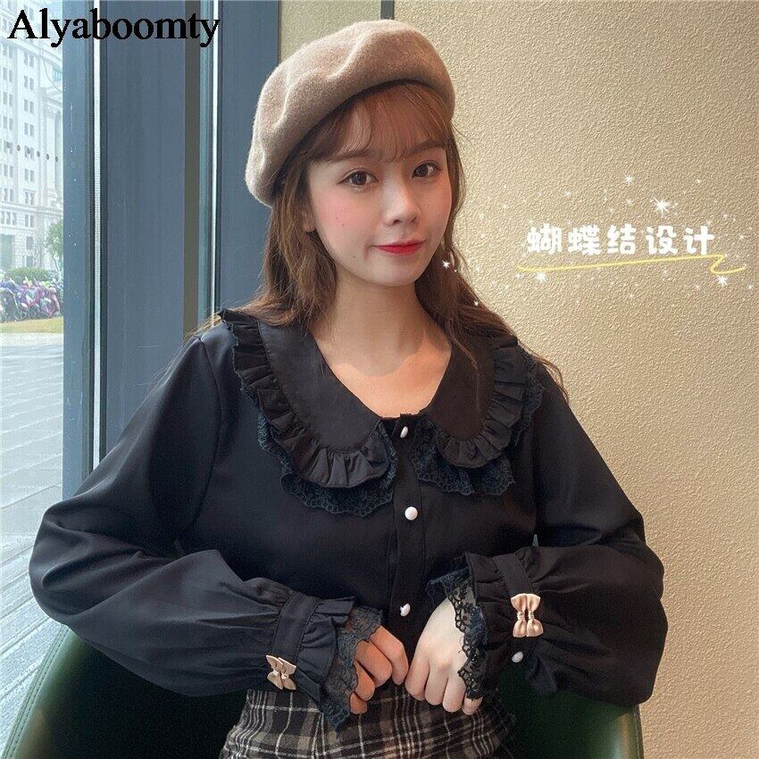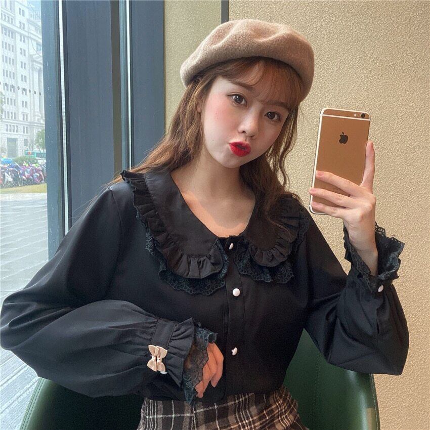 送料無料୨♥୧ スタイルスプリングオータムレディースブラウス カラーレースホワイトブラックリボンシャツ 大人ガーリー スウィート キュート カジュアル 春物 秋物 AOS28709471672