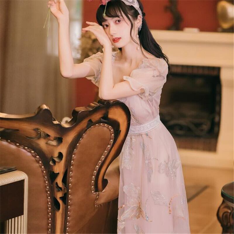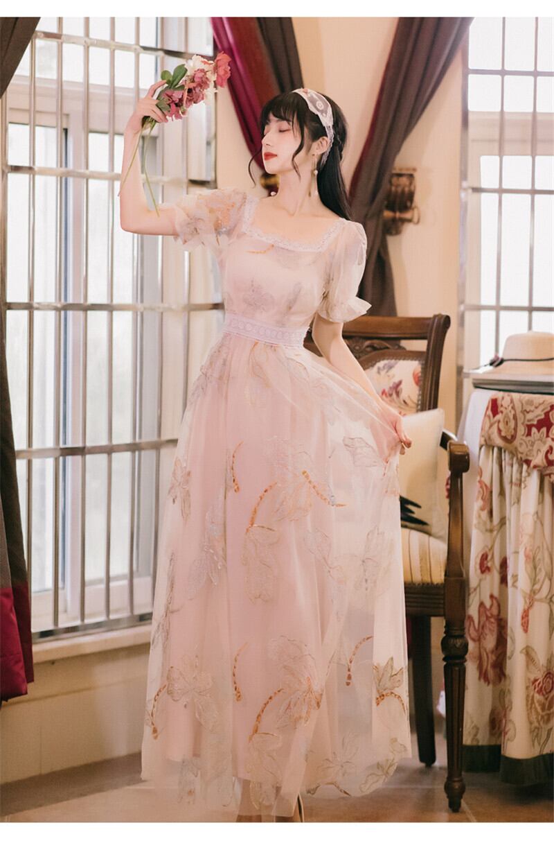 送料無料୨♥୧ サマーレディースマキシメッシュドレス カラー刺繍 夏物 スクウェア AOS62541477466
