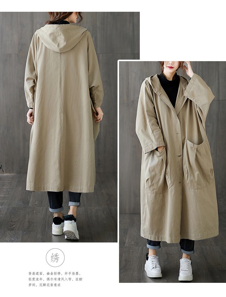 送料無料୨♥୧ スプリングレディースロングカーディガンフードブラックカーキルーズスリーブミディコート 春物 AOS32831329847