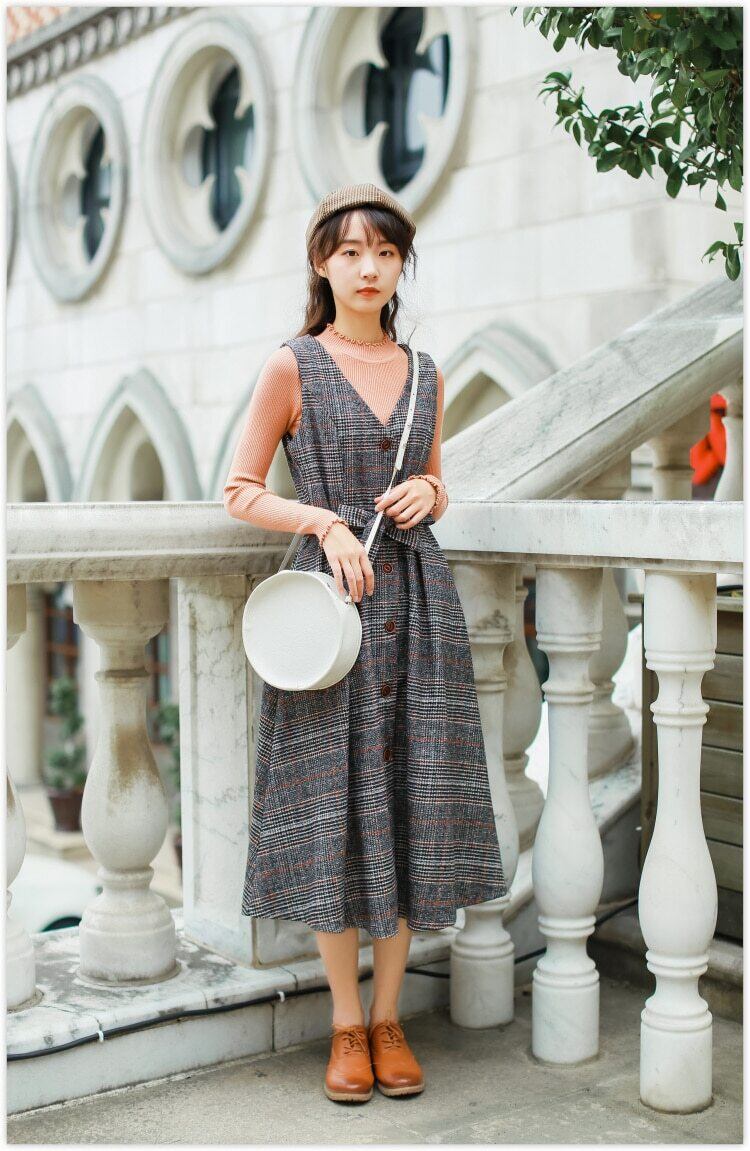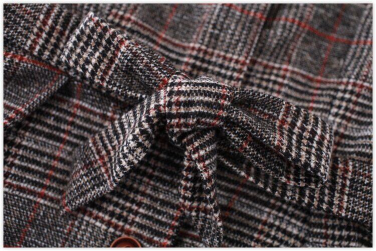 送料無料୨♥୧ オータムウィンターロングドレス レディース格子柄スタンダードシャツ ウール レトロ 大人ガーリー スウィート キュート カジュアル 秋物 冬物 AOS18690114646