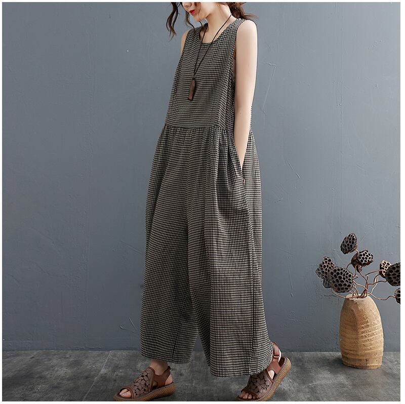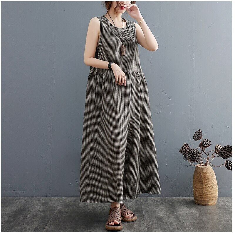 送料無料୨♥୧ サマーレディースジャンプスーツ オールインワン ルーズワイドレッグロングバギーヴィンテージロンパース オールインワン オーバーオール コットン 夏物 ワイドパンツ ビンテージ AOS66245500191