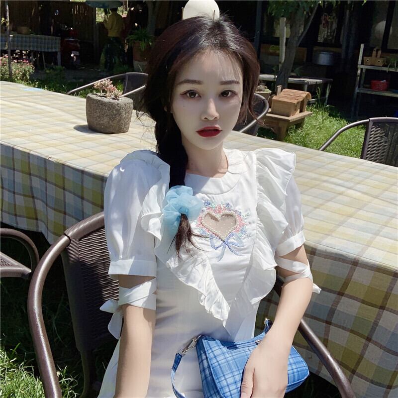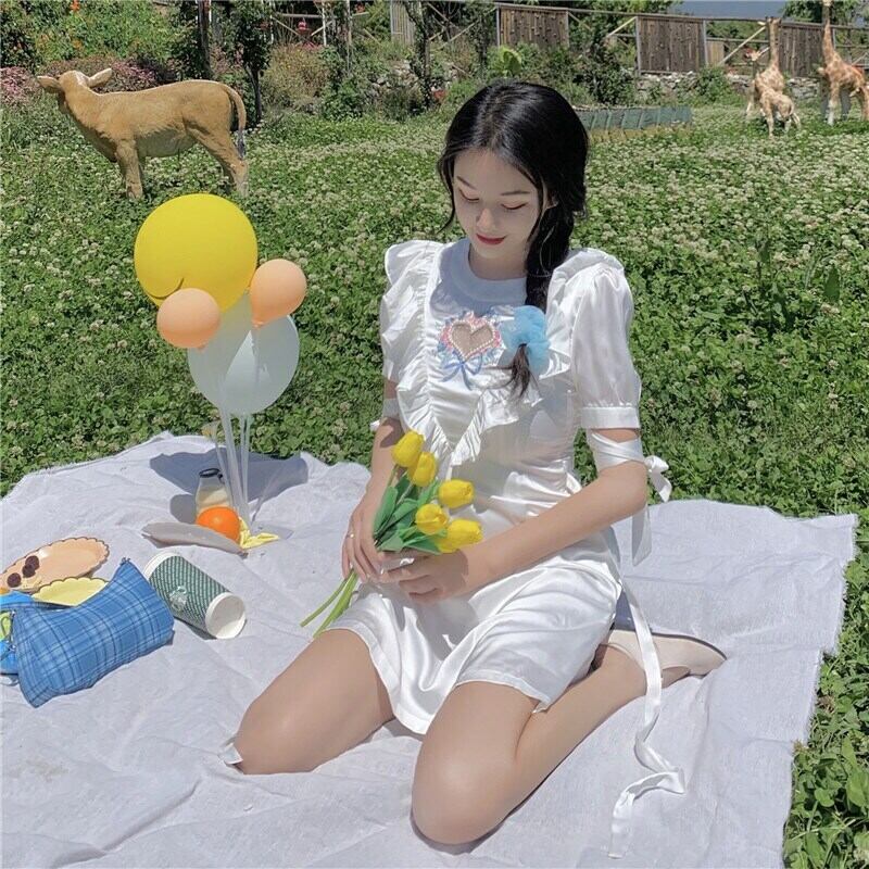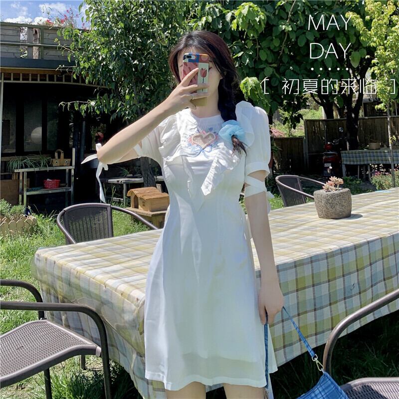 送料無料୨♥୧ サマーレディーススリムホワイトドレス ハート刺繍フローラル 大人ガーリー スウィート キュート カジュアル 夏物 花柄 AOS93505571943