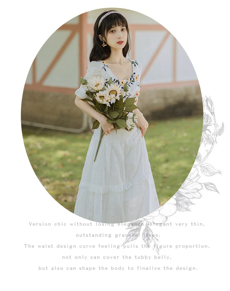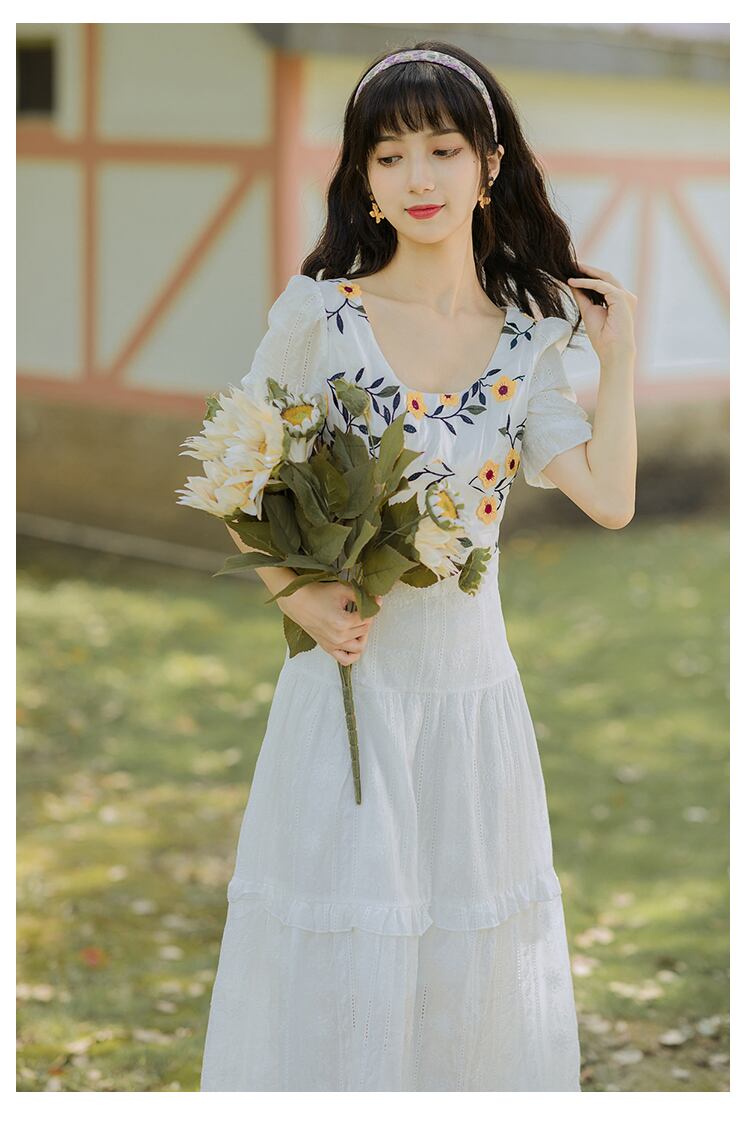 送料無料୨♥୧ サマーレディースマキシロングホワイトドレス フローラル刺繍スリーブフリルドレス ワンピース ラッフル 夏物 花柄 Oネック AOS6653858860