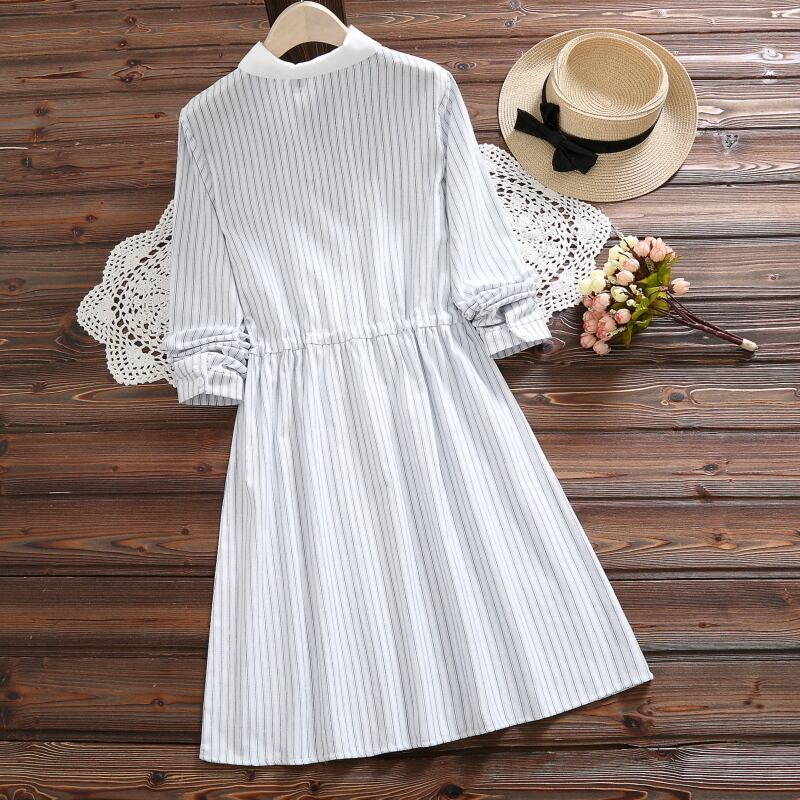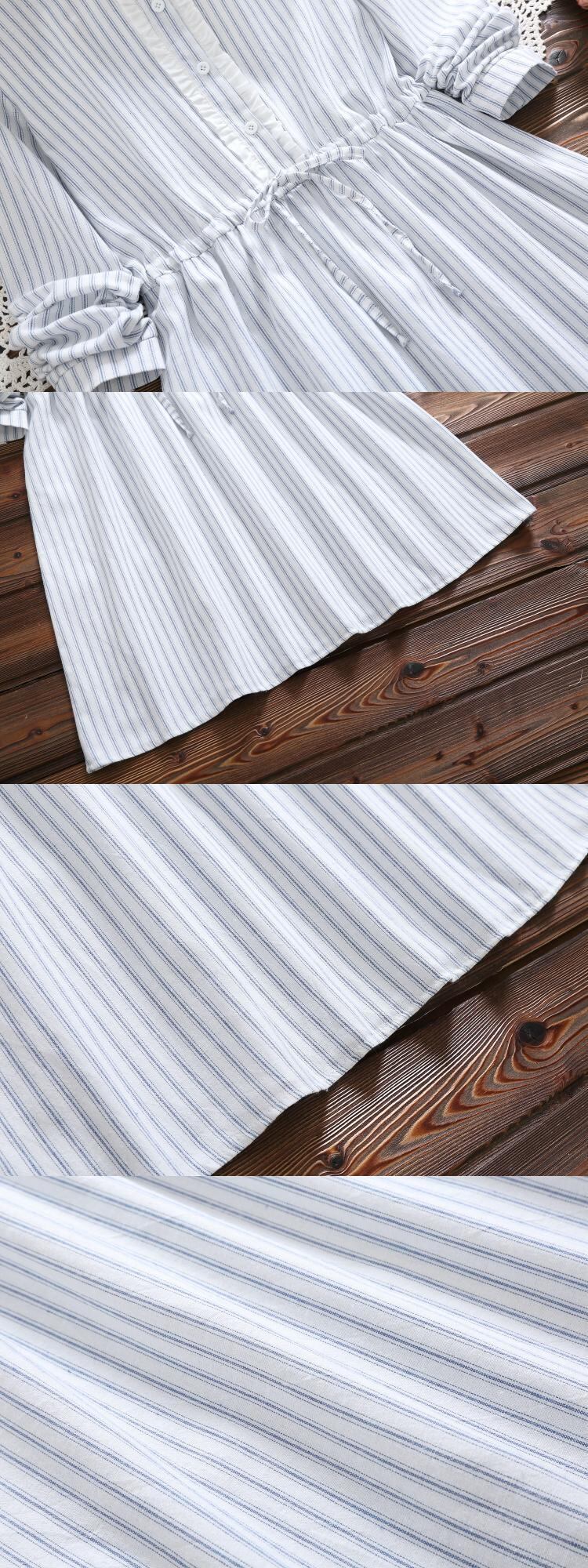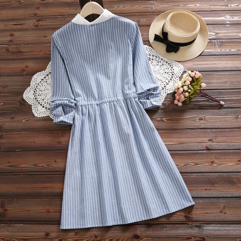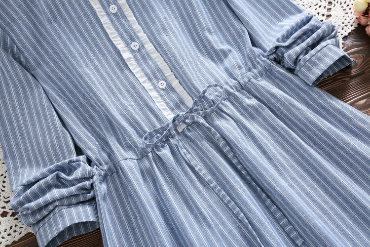 送料無料୨♥୧ オータムスプリングレディースカラーブルーホワイトストライプドレス ヴィンテージスリーブ コットン 大人ガーリー スウィート キュート カジュアル 春物 秋物 ビンテージ AOS60673929435