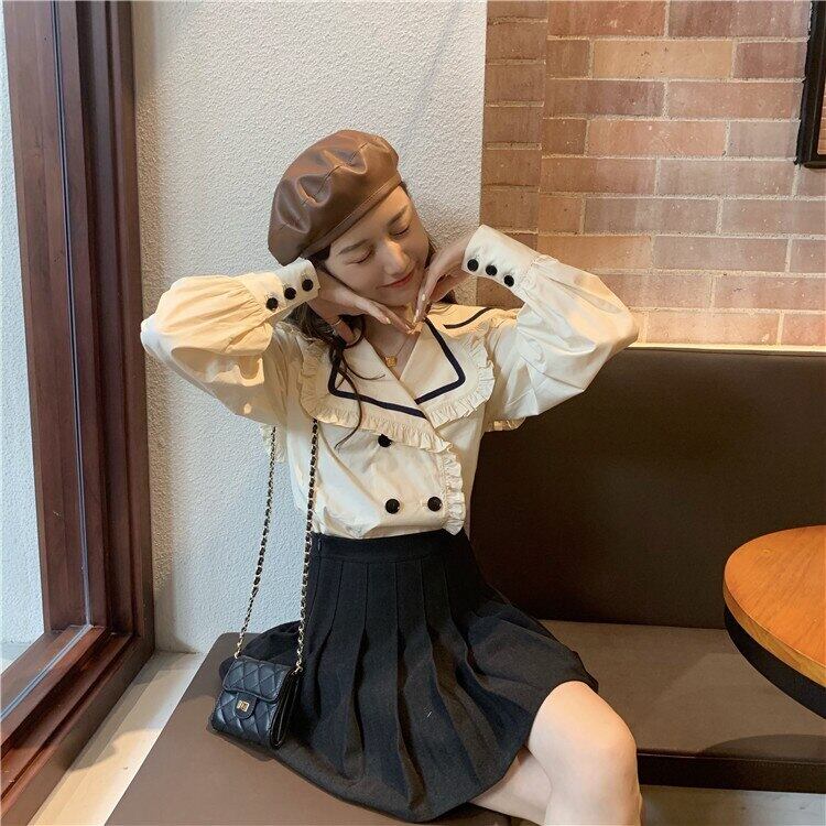 送料無料୨♥୧ スプリングオータムレディースシャツ カラーフリルブラウス スリーブ ランタンスリーブ ラッフル 春物 秋物 AOS95185573437