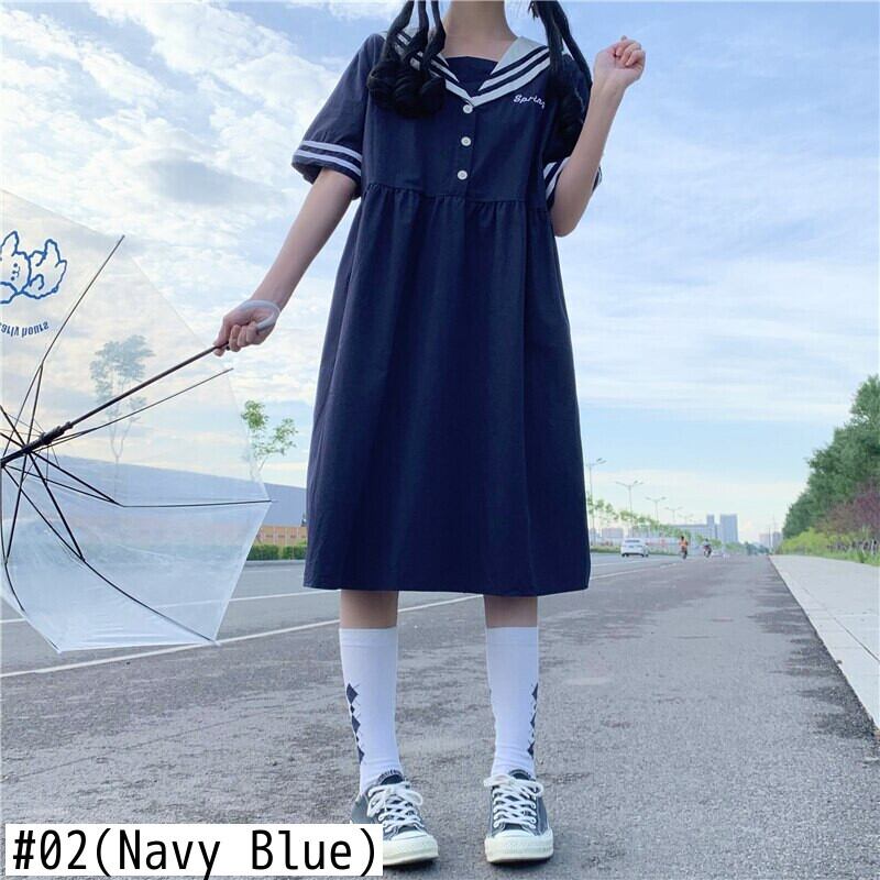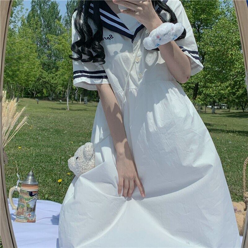 送料無料୨♥୧ スタイルサマーレディースドレス カラーホワイトネイビーブルー 大人ガーリー スウィート キュート カジュアル 夏物 AOS60269209481