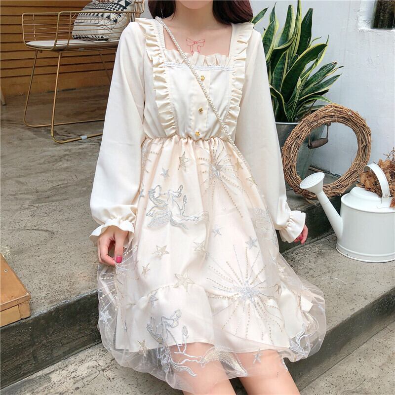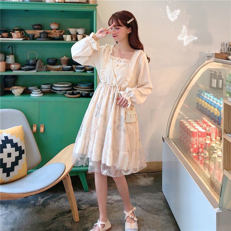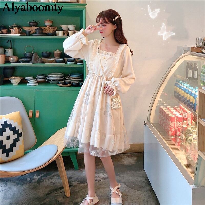 送料無料୨♥୧ スタイルスプリングオータムレディースドレス カラープリント柄メッシュ 大人ガーリー スウィート キュート カジュアル 春物 秋物 スクウェア AOS33471027879