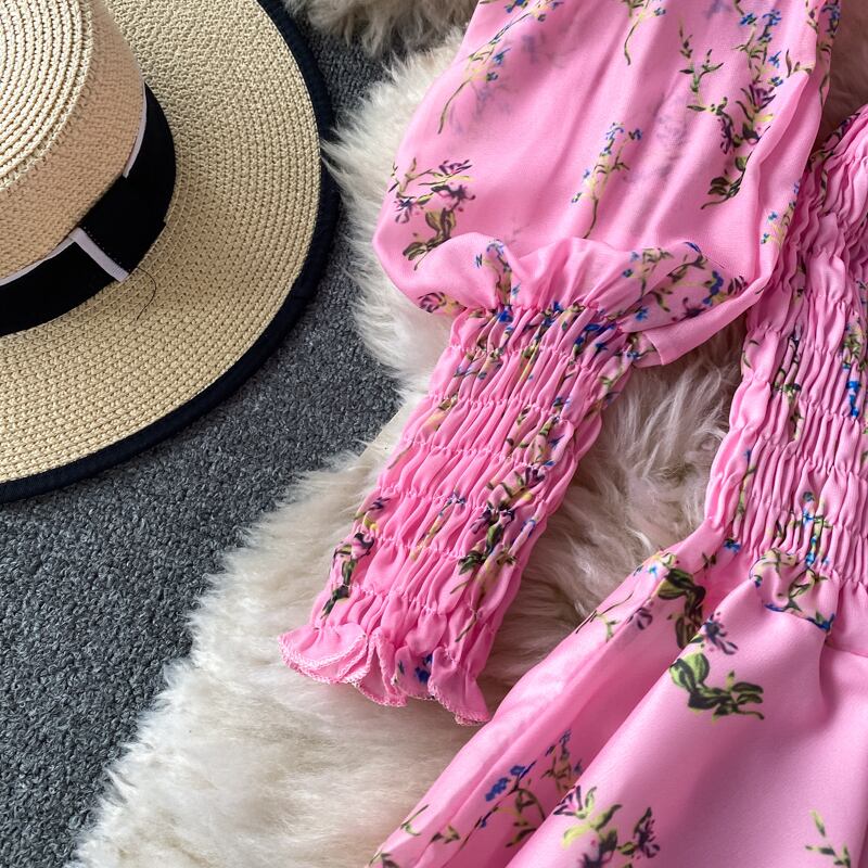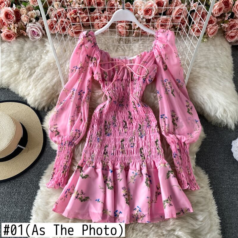 送料無料୨♥୧ ボヘミアンサマーレディースミニAラインドレス ホワイトフローラルプリントパッチワークフリル ピンク ラッフル 夏物 花柄 AOS24500860538