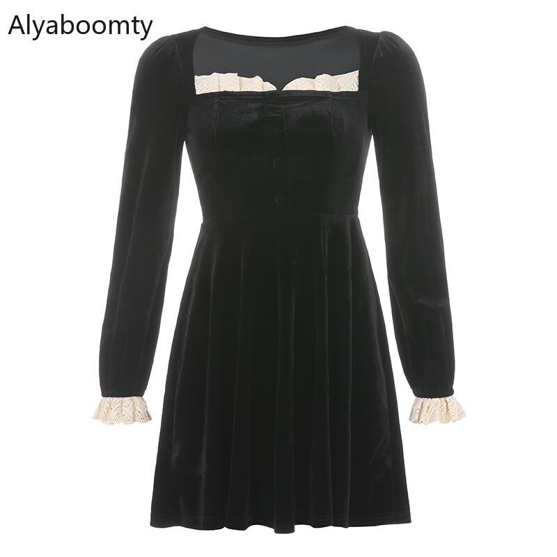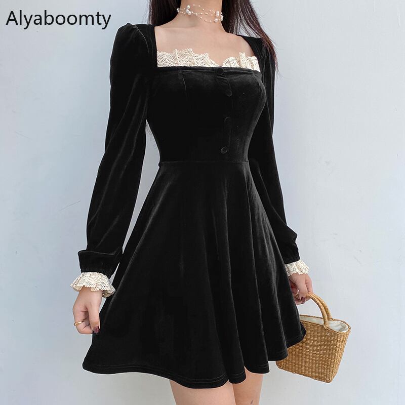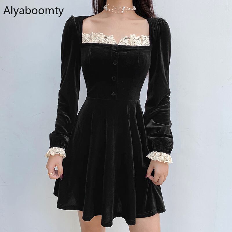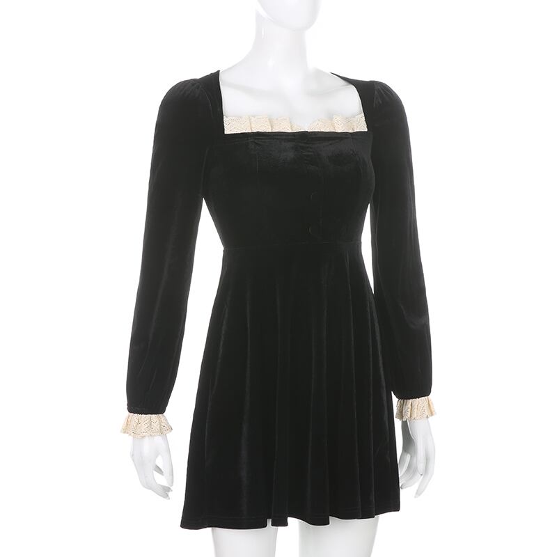 送料無料୨♥୧ レディースブラックミニドレス カラーレース かわいい スクウェア AOS81944817112