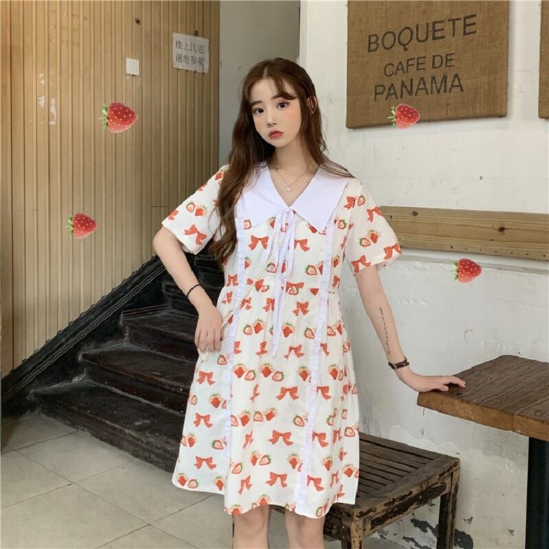 送料無料୨♥୧ スタイルサマーレディースドレス カラープリント柄ルーズ半袖スリーブ ショート ハーフスリーブ 大人ガーリー スウィート キュート カジュアル 夏物 AOS45255380479