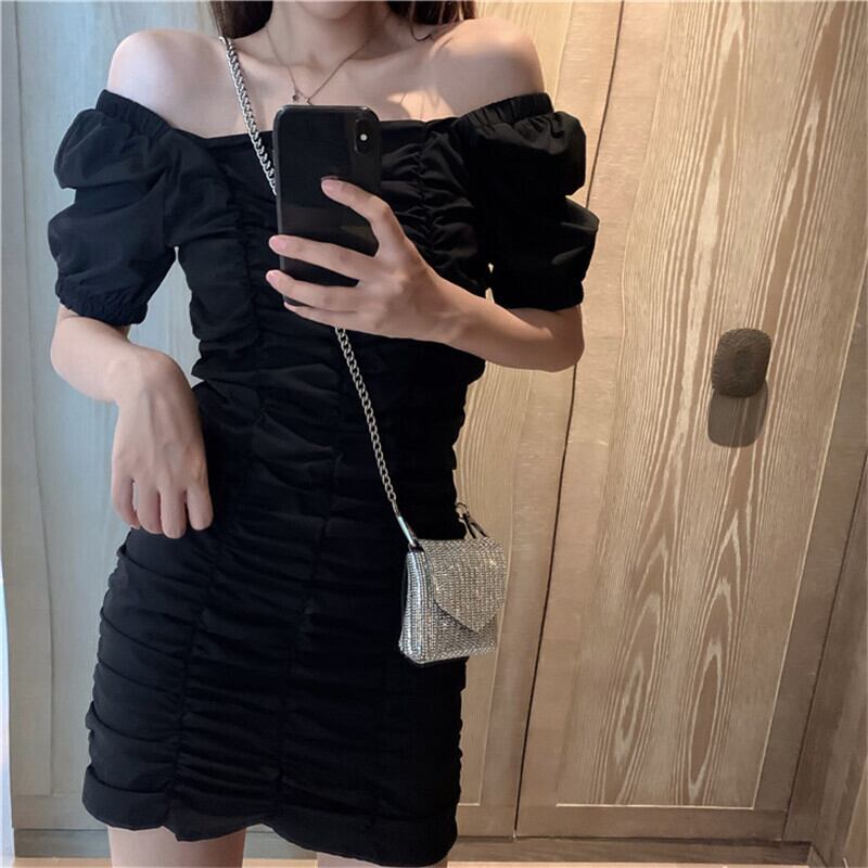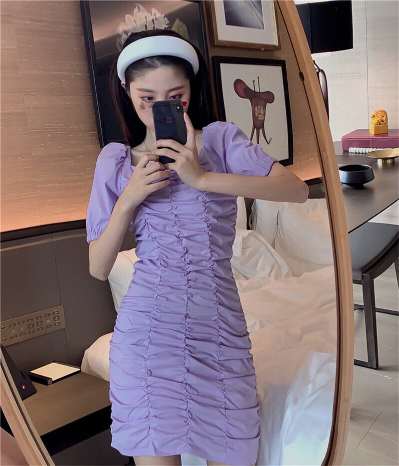 送料無料୨♥୧ サマーレディースストリートウェアドレス カラーブラックスリーブミニドレス ワンピース かわいい 夏物 パープル AOS8243956685