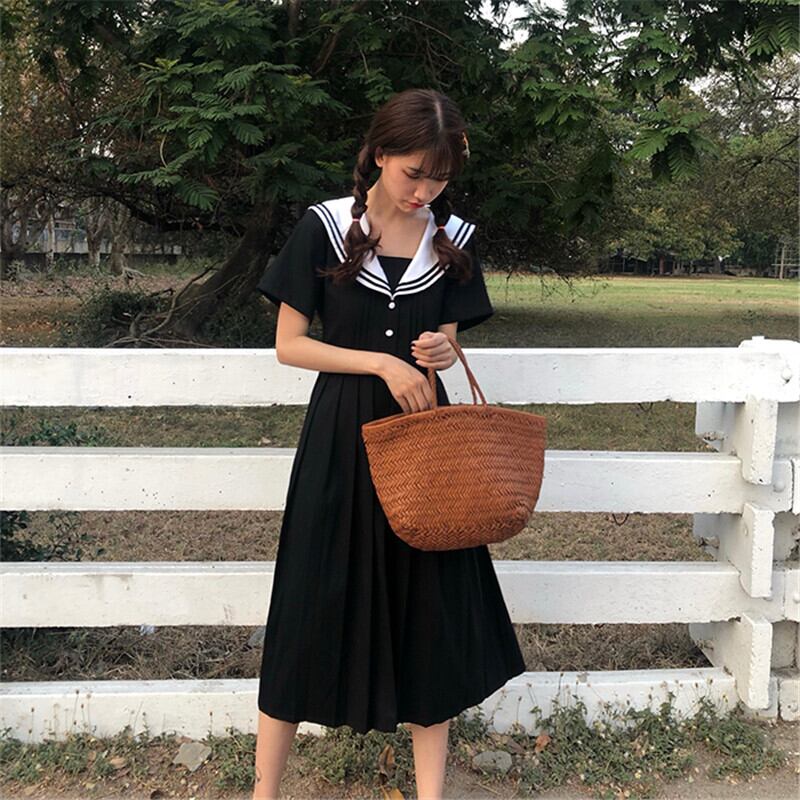 送料無料୨♥୧ サマーレディースブラックミディドレス カラールーズプリーツ 大人ガーリー スウィート キュート カジュアル かわいい 夏物 AOS55164679934