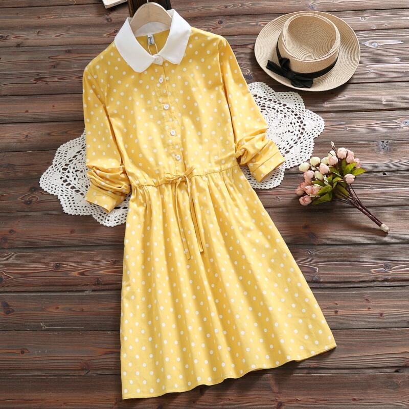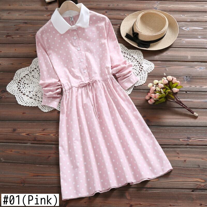 送料無料୨♥୧ スプリングオータムレディースドレス イエロー水玉レース長袖スリーブ ロング ピンク 大人ガーリー スウィート キュート カジュアル 春物 秋物 レースアップ AOS81056582056