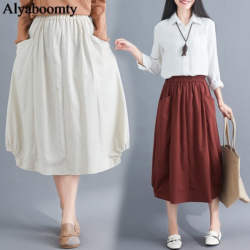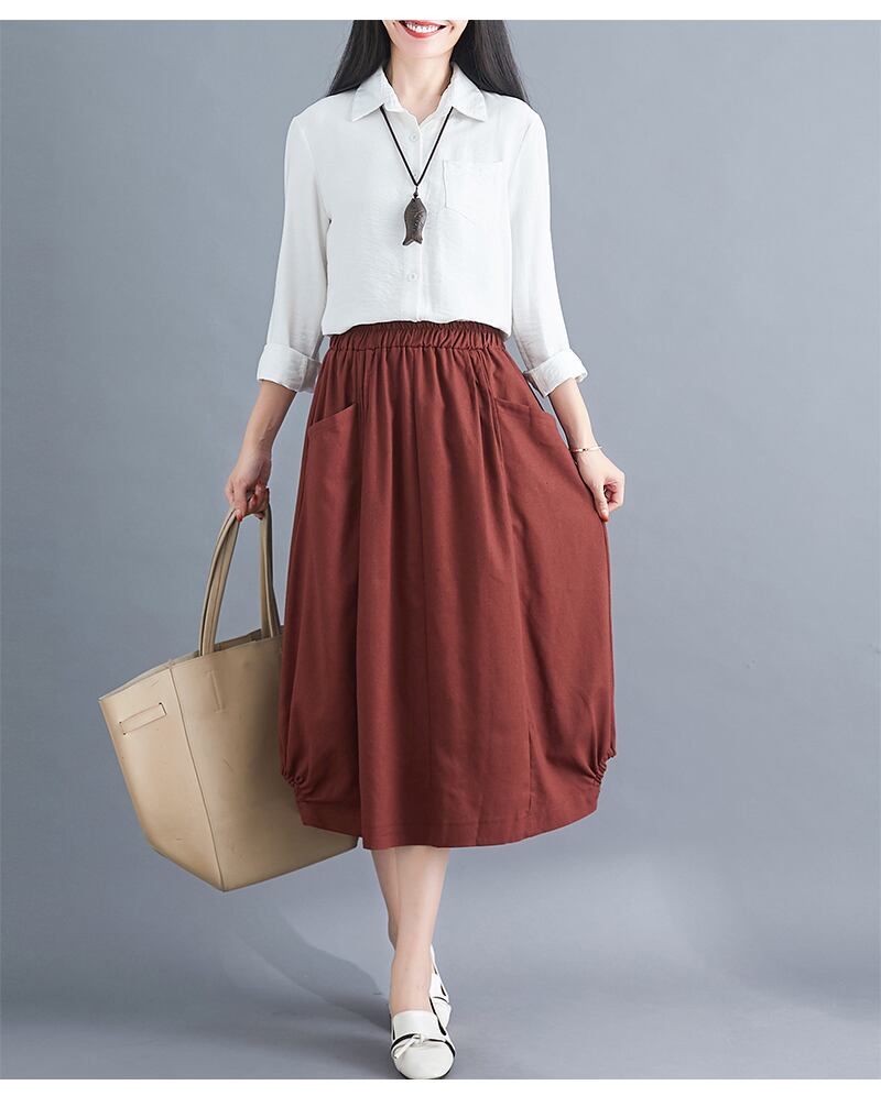 送料無料୨♥୧ オータムスプリングスカート ウェストソリッド ヴィンテージミディ コットン 大人ガーリー スウィート キュート カジュアル 春物 秋物 ソリッドカラー ビンテージ AOS39193190867