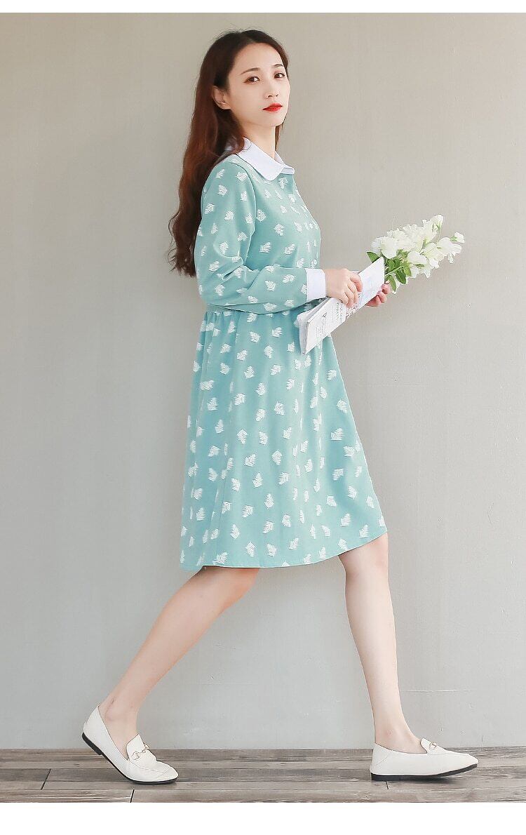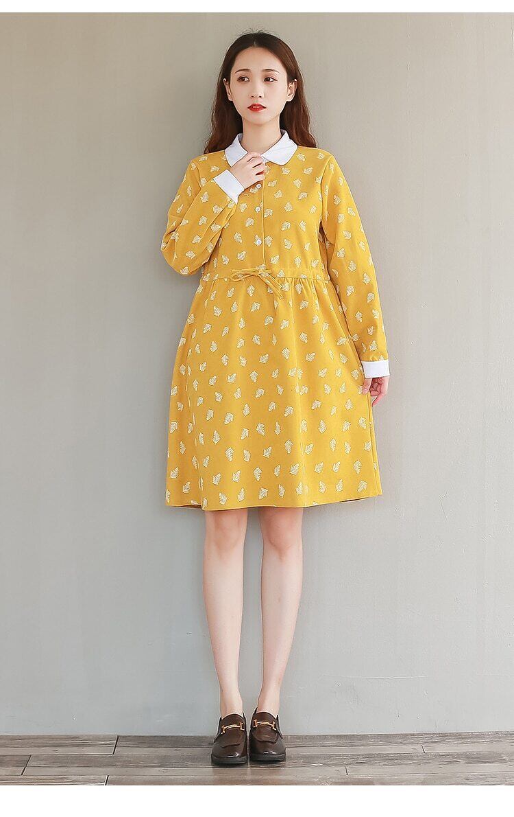 送料無料୨♥୧ レディースオータムドレス カラーイエローグリーンプリントレースコーデュロイ 大人ガーリー スウィート キュート カジュアル 秋物 レースアップ AOS21271475059