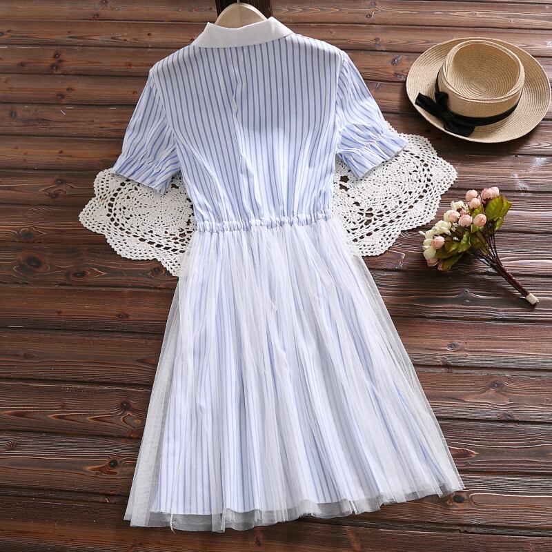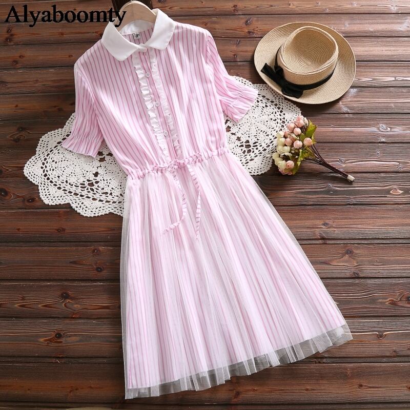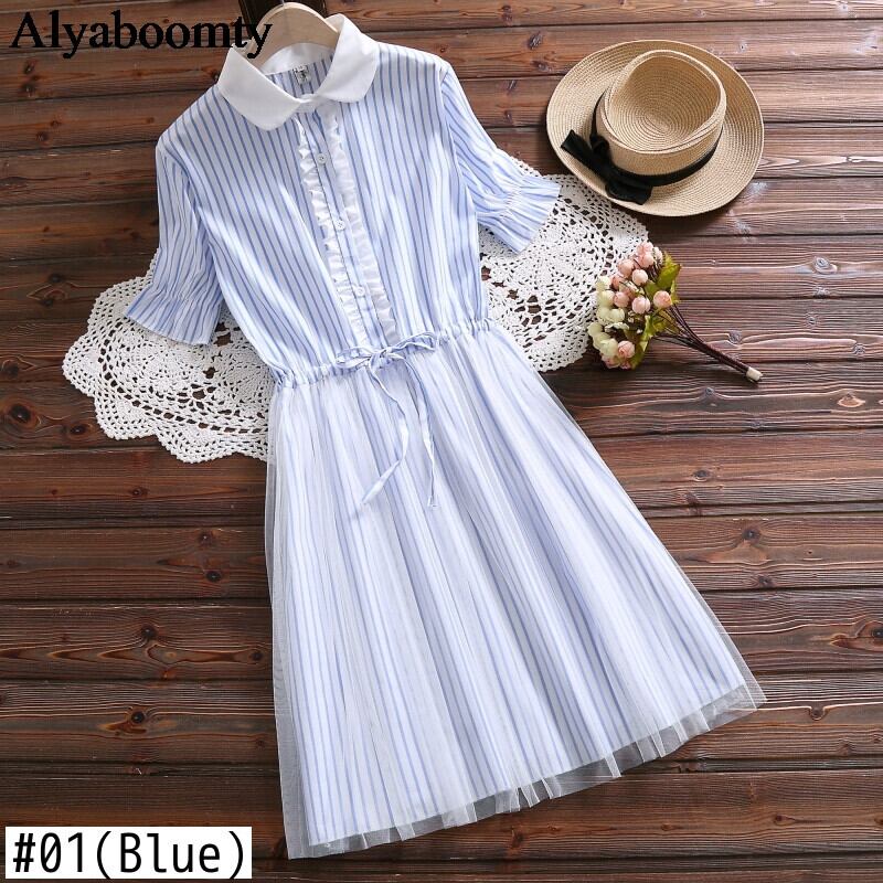 送料無料୨♥୧ サマーレディースドレス カラーストライプブルー ピンク 大人ガーリー スウィート キュート カジュアル 夏物 AOS21458489834