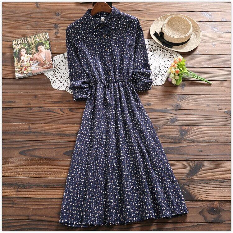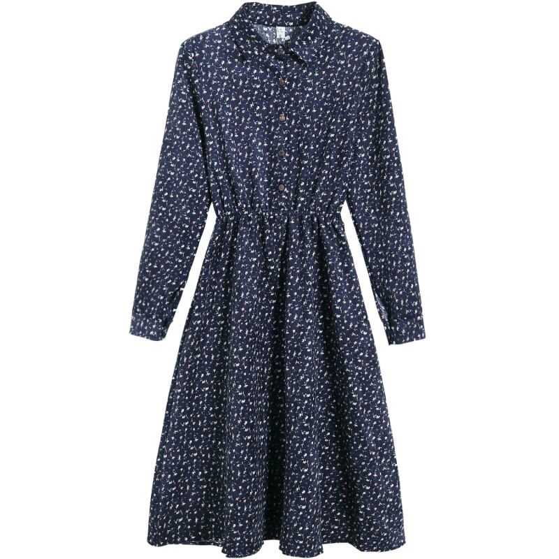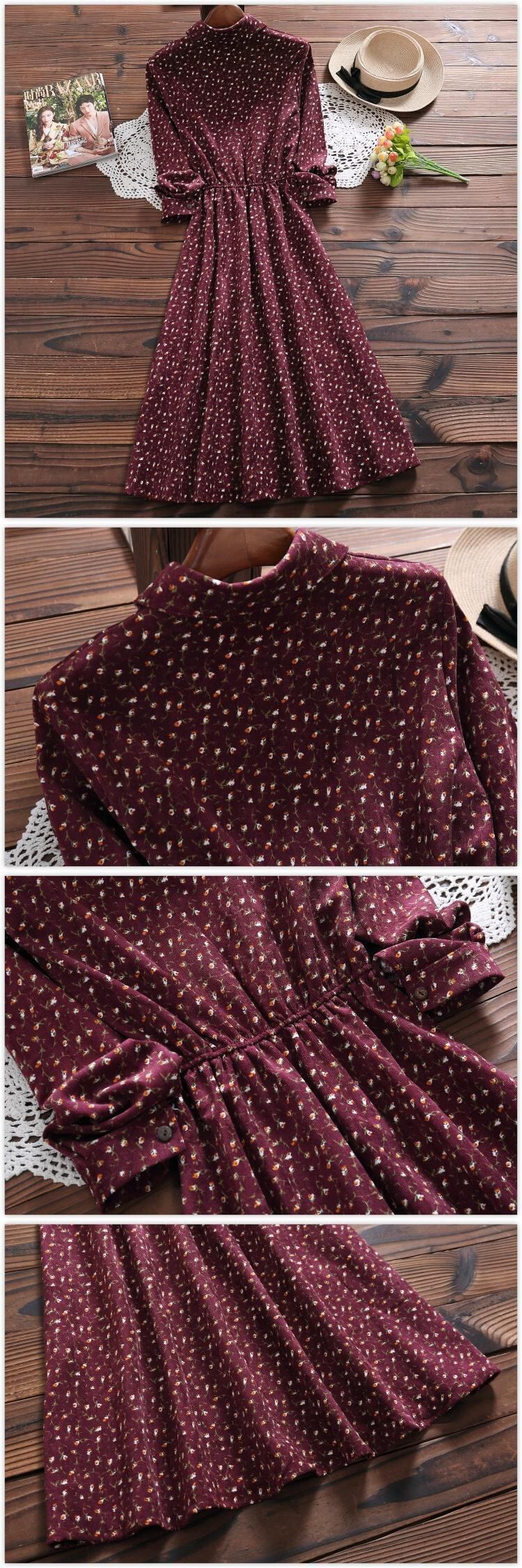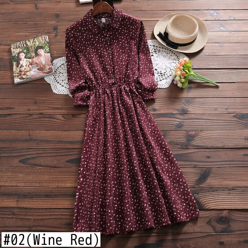 送料無料୨♥୧ オータムスプリングレディースロングドレス フローラルプリント柄ヴィンテージミディコーデュロイ 大人ガーリー スウィート キュート カジュアル 春物 秋物 花柄 ビンテージ AOS21331419423