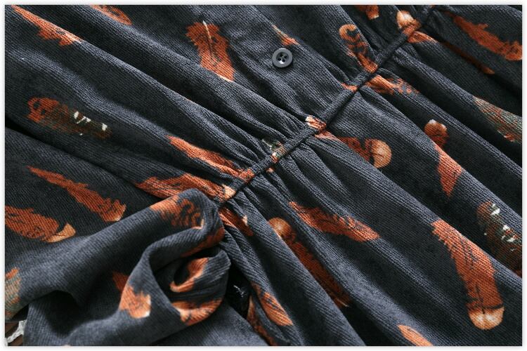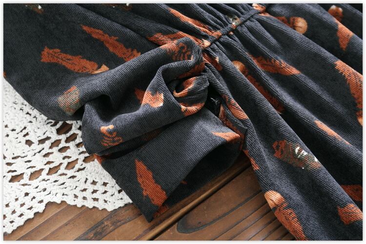送料無料୨♥୧ スプリングレディースヴィンテージドレス スタンドカラーカラールーズスタンダードコーデュロイミディ レトロ 大人ガーリー スウィート キュート カジュアル 春物 ビンテージ AOS32272975533
