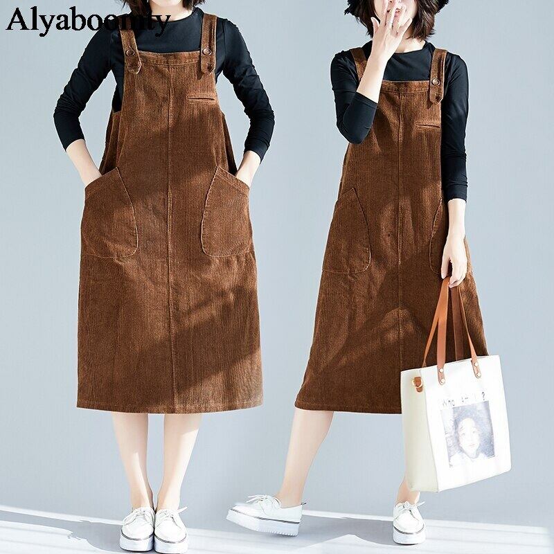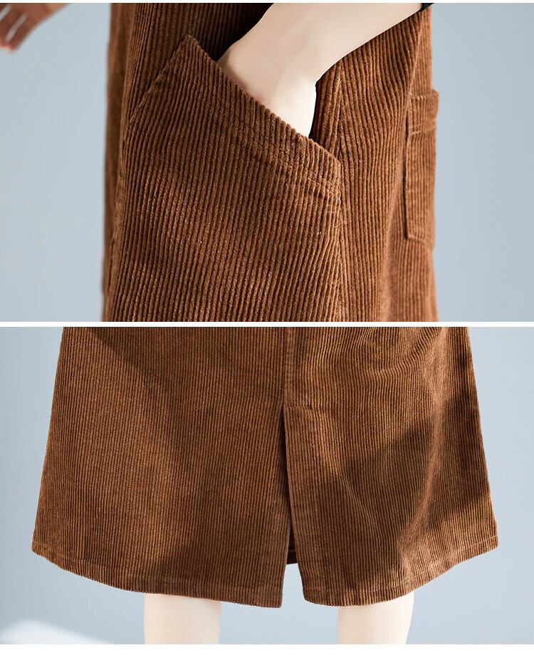 送料無料୨♥୧ スタイルレディースミディドレス オータムスプリングノースリーブブラウンヴィンテージコーデュロイ 春物 秋物 ビンテージ AOS13454993041