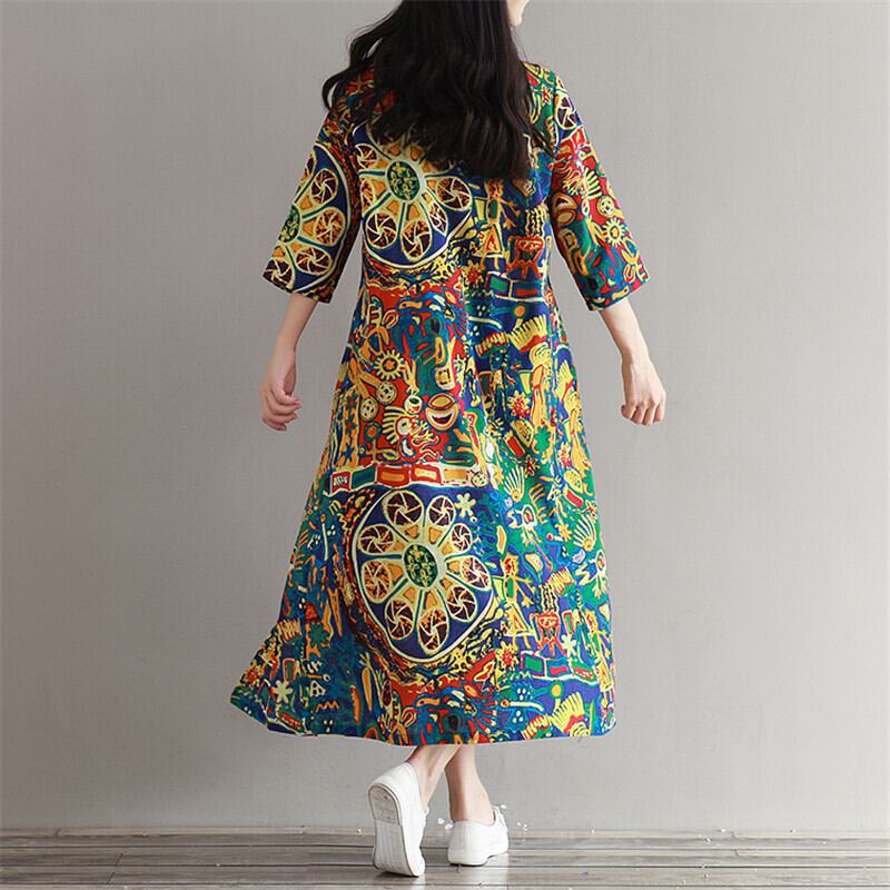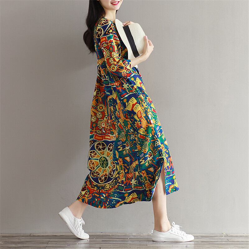 送料無料୨♥୧ オータムスプリングレディースヴィンテージロングドレス ラウンドネックプリント半袖スリーブガウン コットン ハーフスリーブ 大人ガーリー スウィート キュート カジュアル 春物 秋物 Oネック ビンテージ AOS48051357951