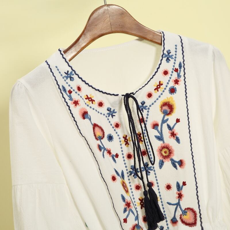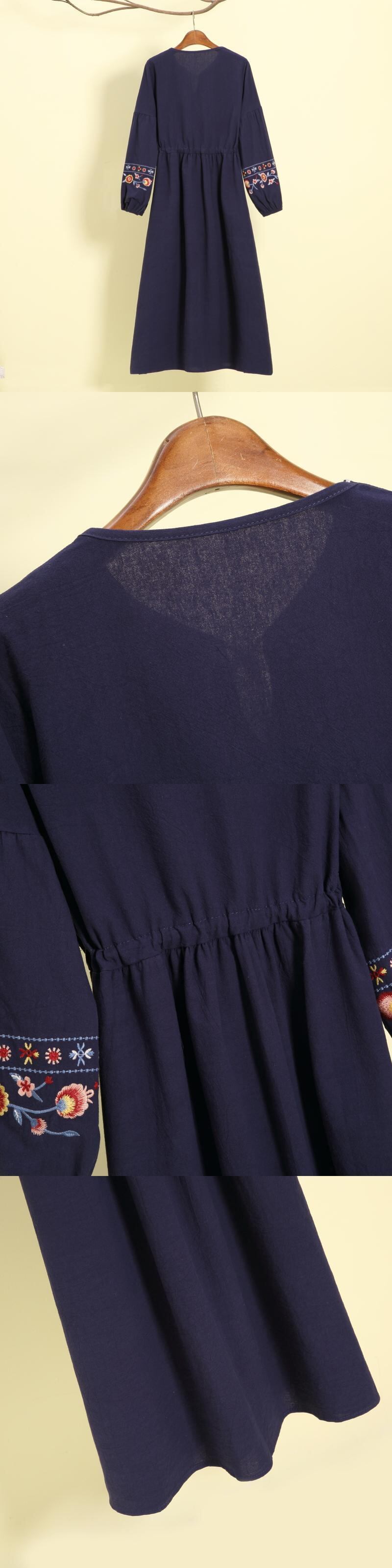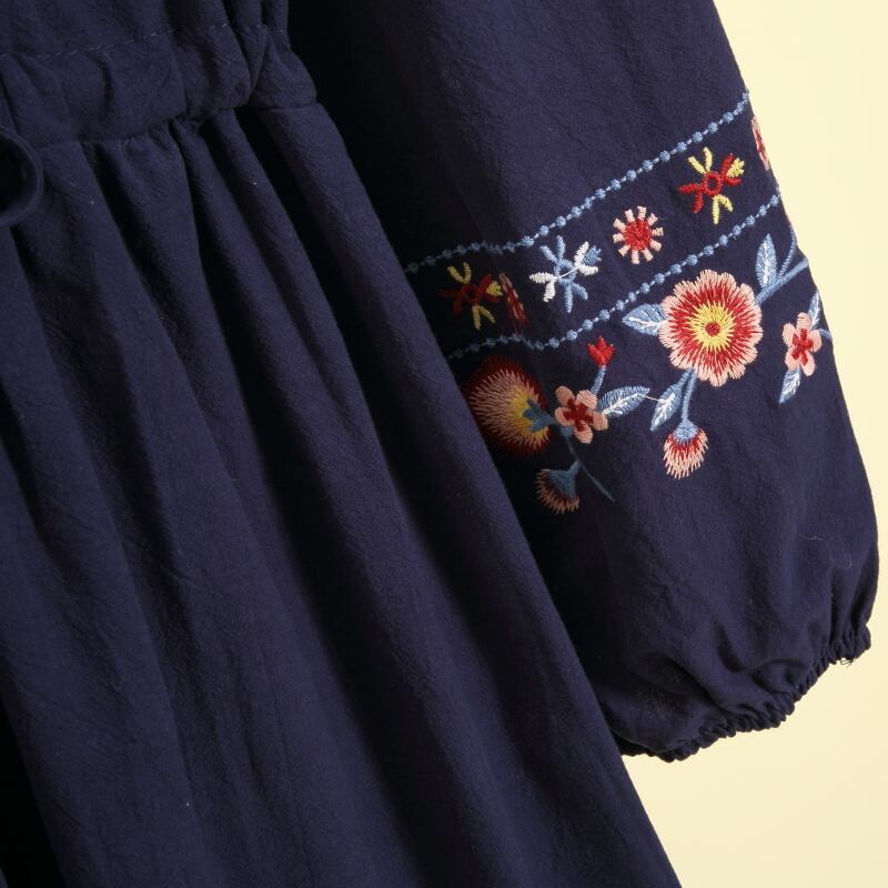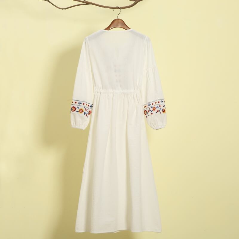送料無料୨♥୧ スプリングオータムレディースミディドレス ホワイトネイビーブルーフローラル刺繍 コットン 大人ガーリー スウィート キュート カジュアル 春物 秋物 花柄 AOS56338341451