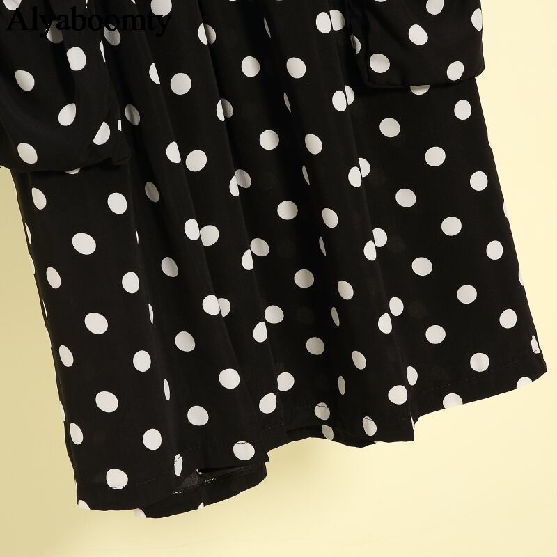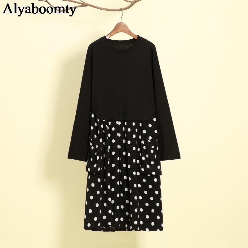 送料無料୨♥୧ スプリングオータムレディースドレス パッチワーク水玉ブラックルーズ コットン 春物 秋物 Oネック AOS62880577701