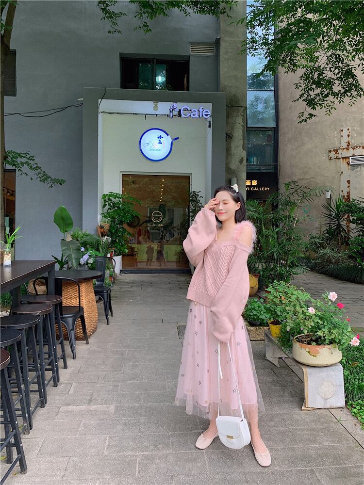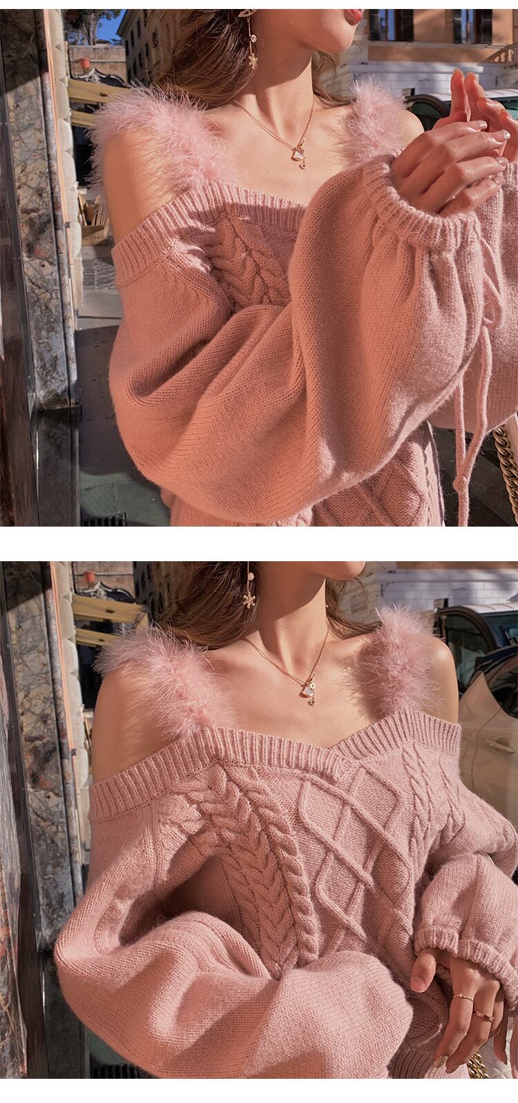 送料無料୨♥୧ カラーレディースストリートウェアセーター オフショルダーイエローニットトップス ピンク 大人ガーリー スウィート キュート カジュアル AOS57793583209