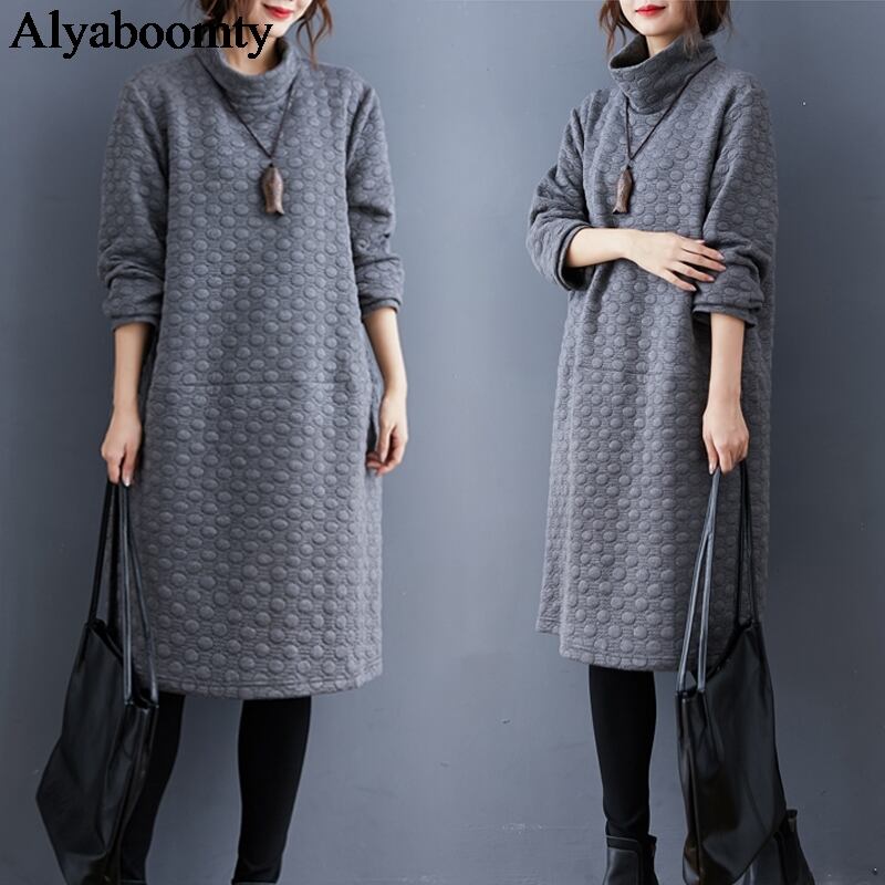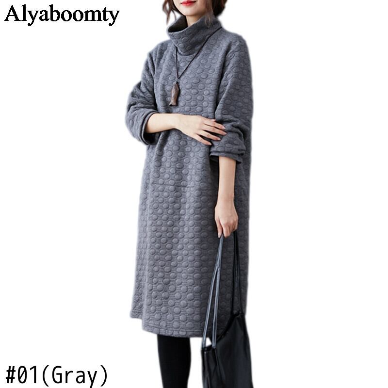 送料無料୨♥୧ スタイルオータムウィンターレディースドレス グレー水玉ヴィンテージルーズ 秋物 冬物 ビンテージ AOS71089063846