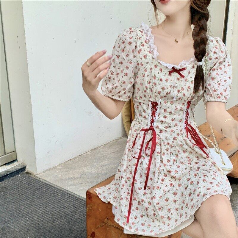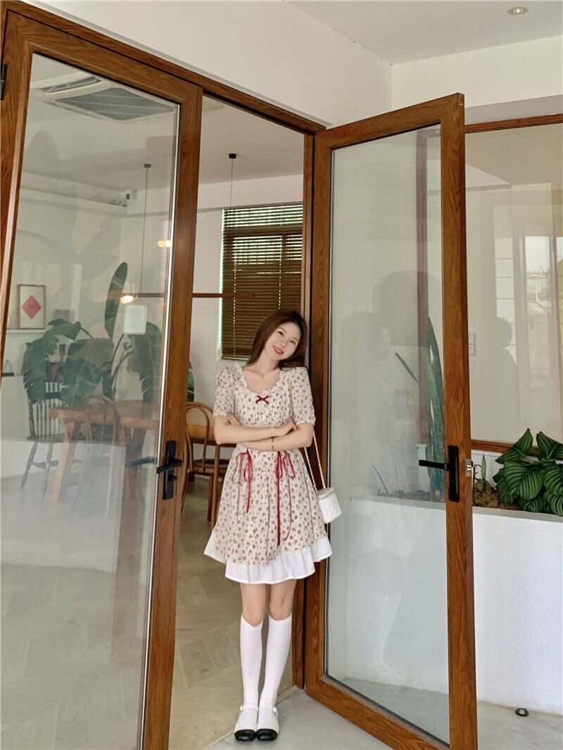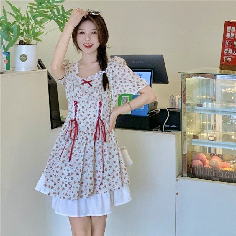 送料無料୨♥୧ サマーレディースフローラルドレス カラーバンドプリント柄半袖スリーブシフォン ショート ハーフスリーブ 大人ガーリー スウィート キュート カジュアル 夏物 花柄 AOS16152865259