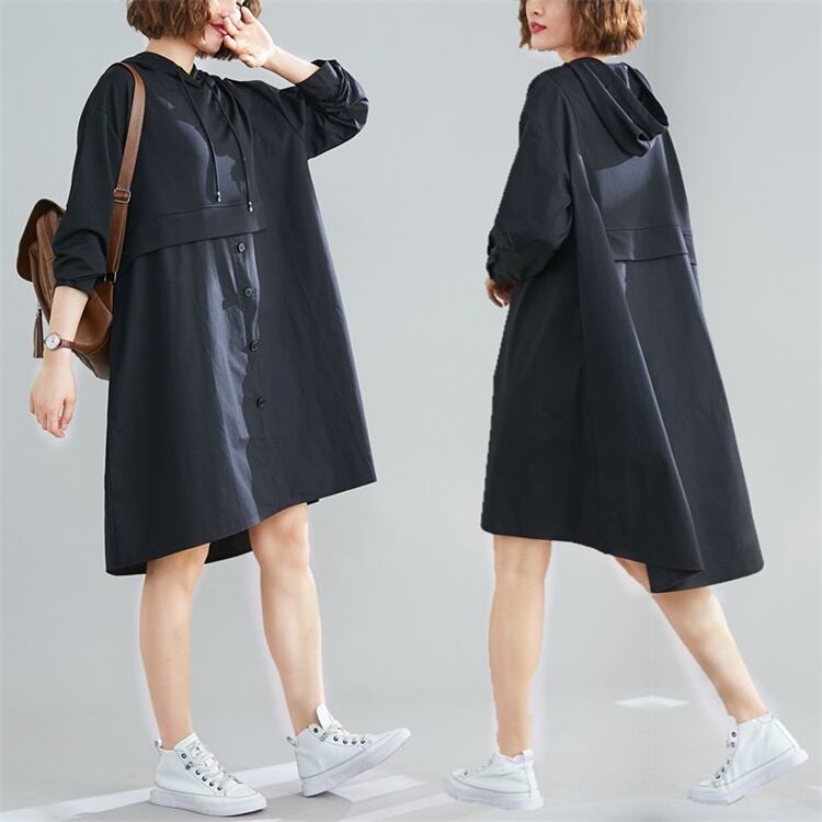 送料無料୨♥୧ スタイルスプリングオータムレディースドレス ブラックフードスリーブバギー 春物 秋物 AOS91129812810