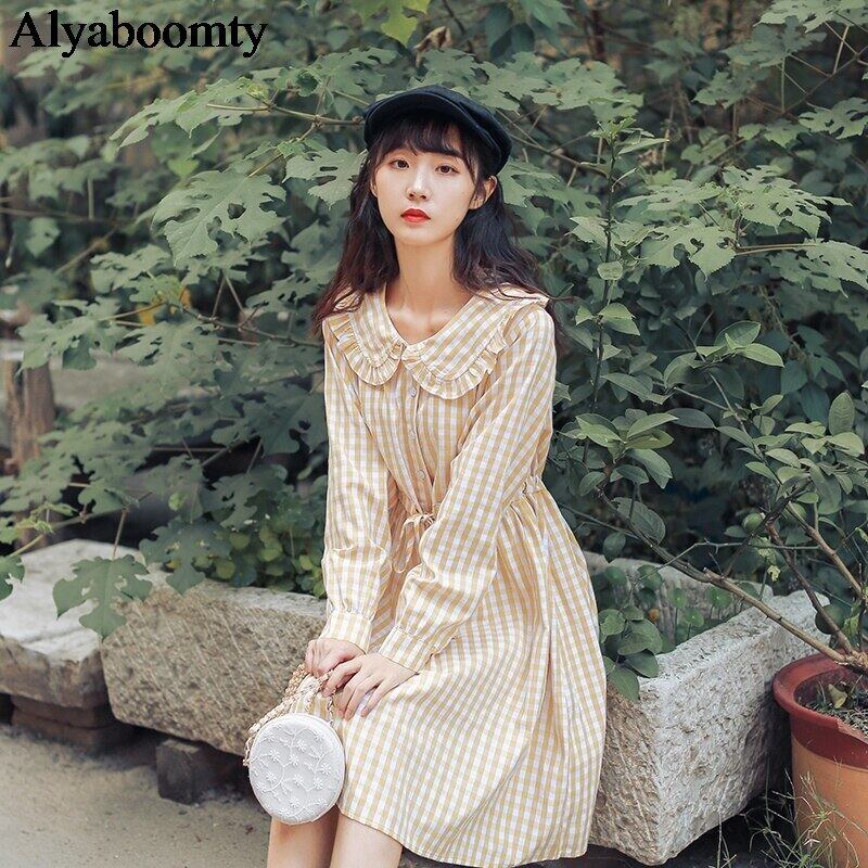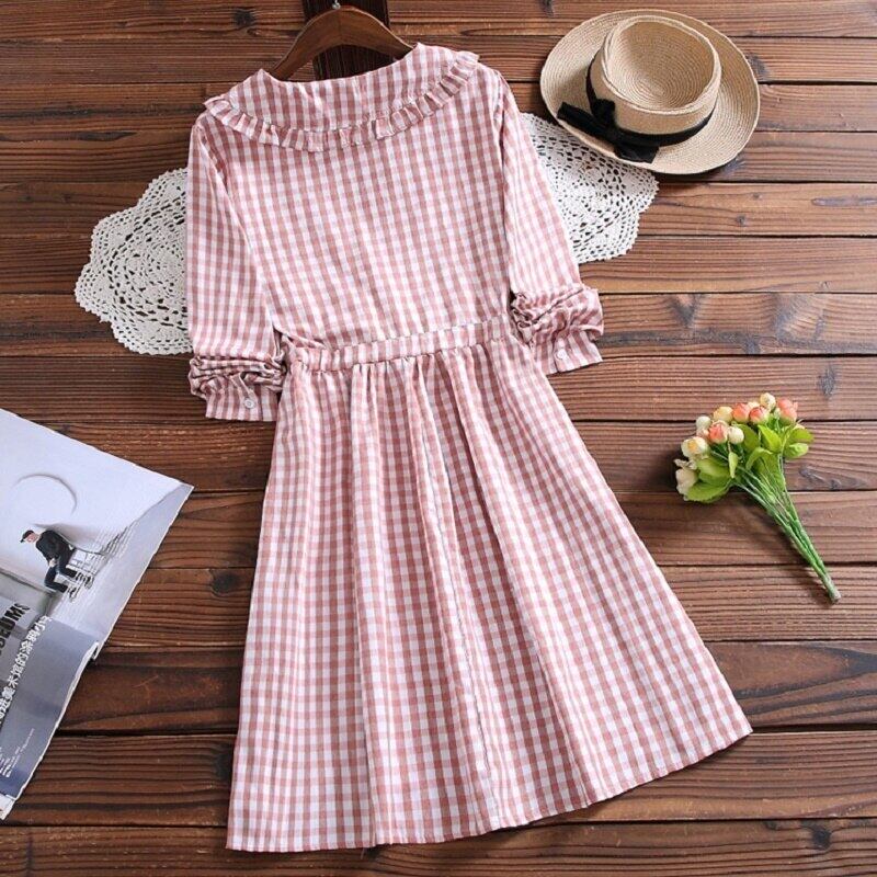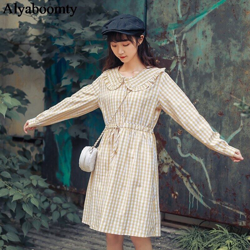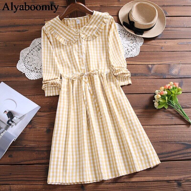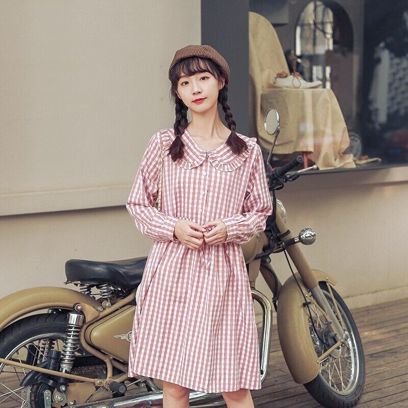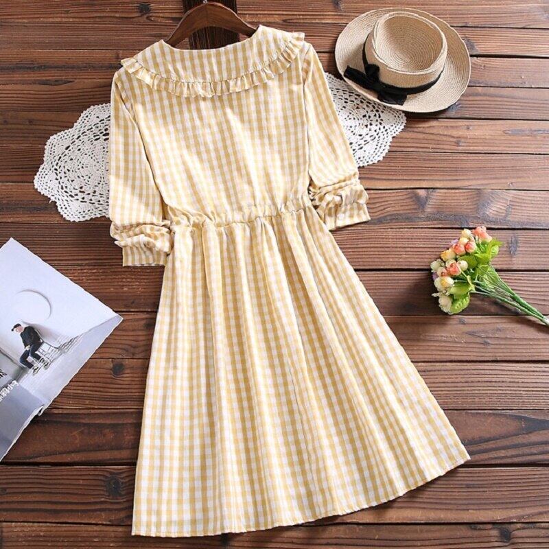 送料無料୨♥୧ スタイルオータムスプリングレディースドレス カラーイエロー格子柄レース長袖スリーブ ロング ピンク 大人ガーリー スウィート キュート カジュアル 春物 秋物 レースアップ AOS94060129310