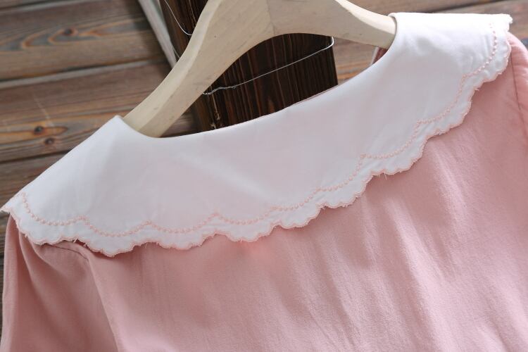 送料無料୨♥୧ サマーレディースブルードレス カラー刺繍レース半袖スリーブ ショート ピンク ハーフスリーブ 大人ガーリー スウィート キュート カジュアル 夏物 レースアップ AOS23726892808