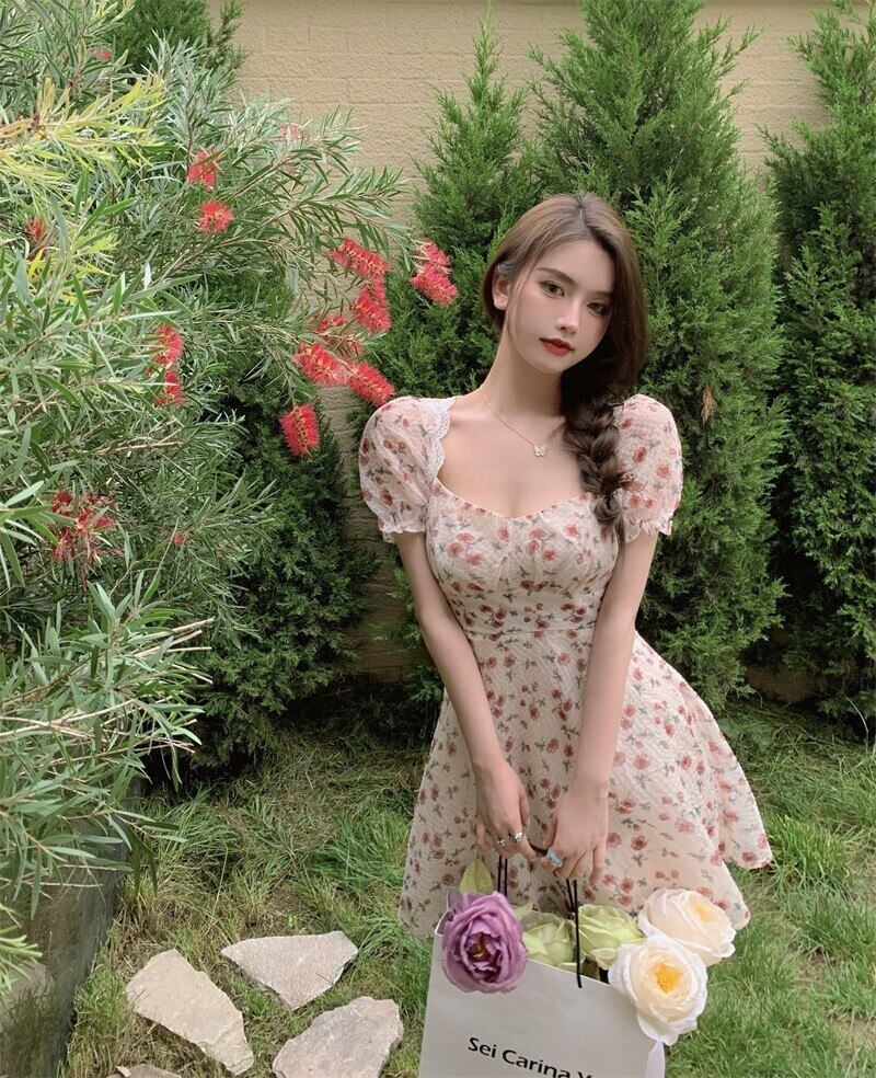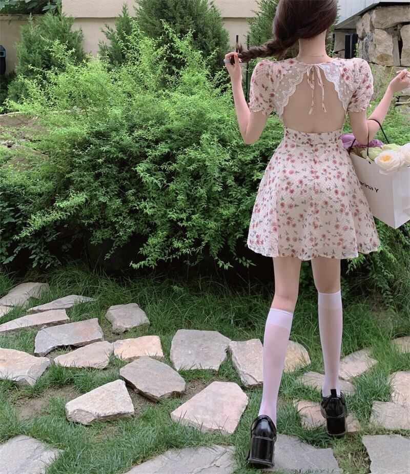 送料無料୨♥୧ サマーレディースフローラルミニドレス バックレスバンドレーススリーブ 大人ガーリー スウィート キュート カジュアル 夏物 花柄 AOS18625604012