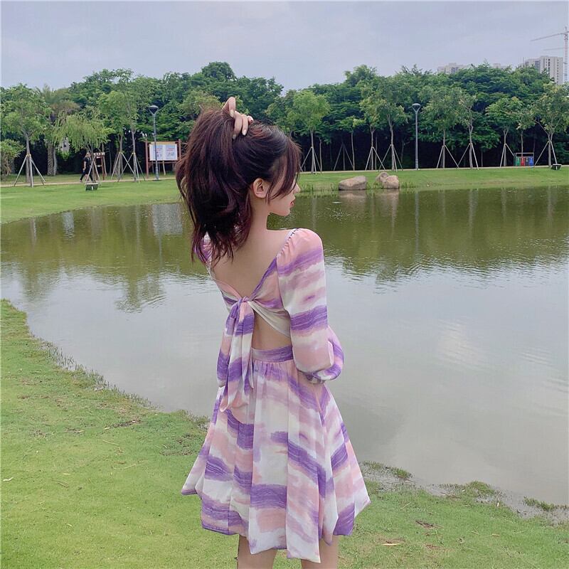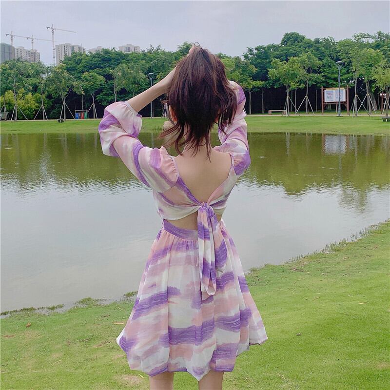 送料無料୨♥୧ オータムレディースストリートウェアドレス ストラップレスバックレスバンドミニ ロング かわいい 秋物 パープル AOS89952488985