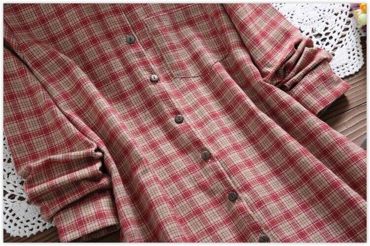 送料無料୨♥୧ オータムウィンターシャツ ドレス 格子柄スタイルミニヴィンテージフリルレディースドレス ワンピース コットン ラッフル 大人ガーリー スウィート キュート カジュアル 秋物 冬物 ビンテージ AOS23416236244
