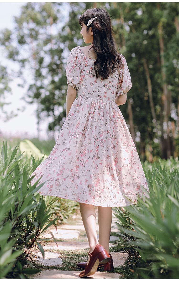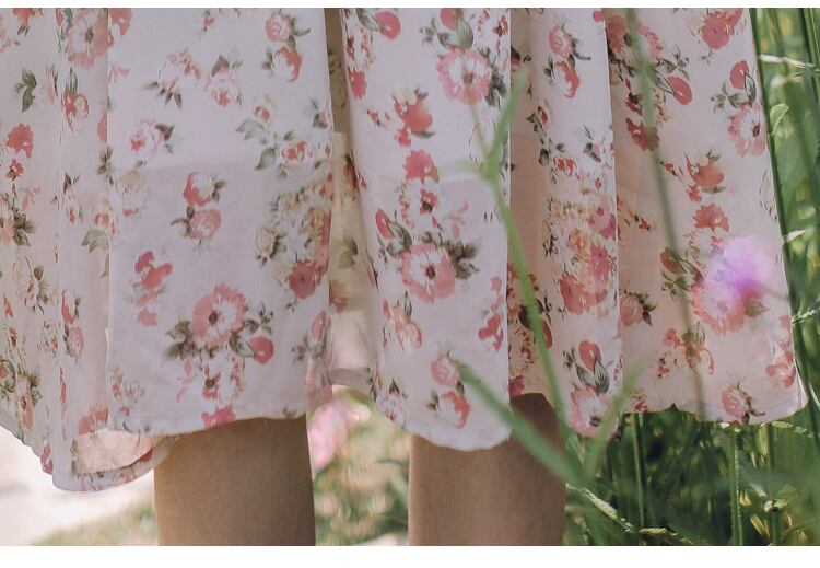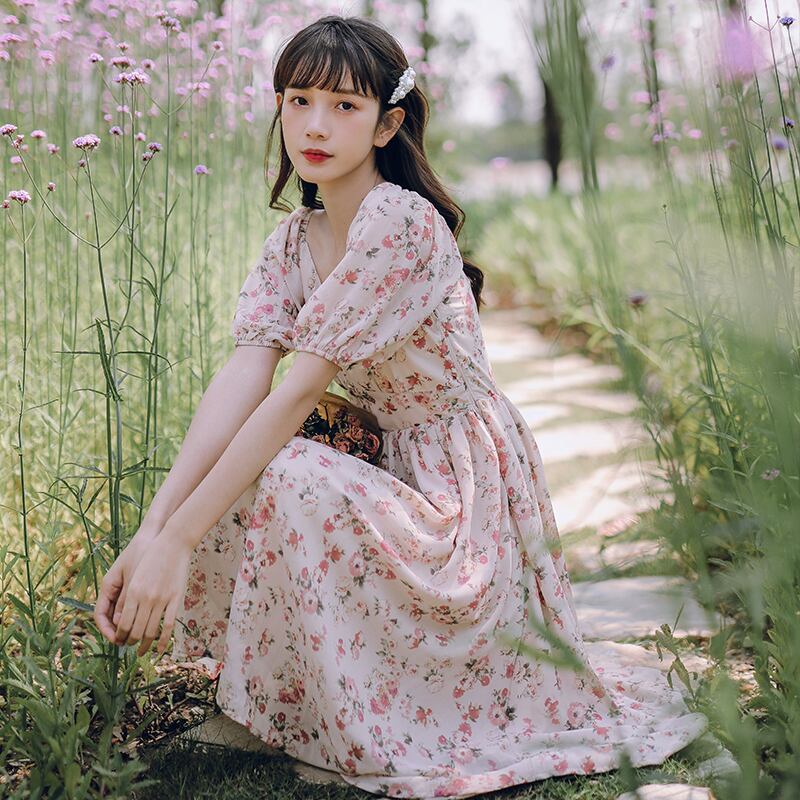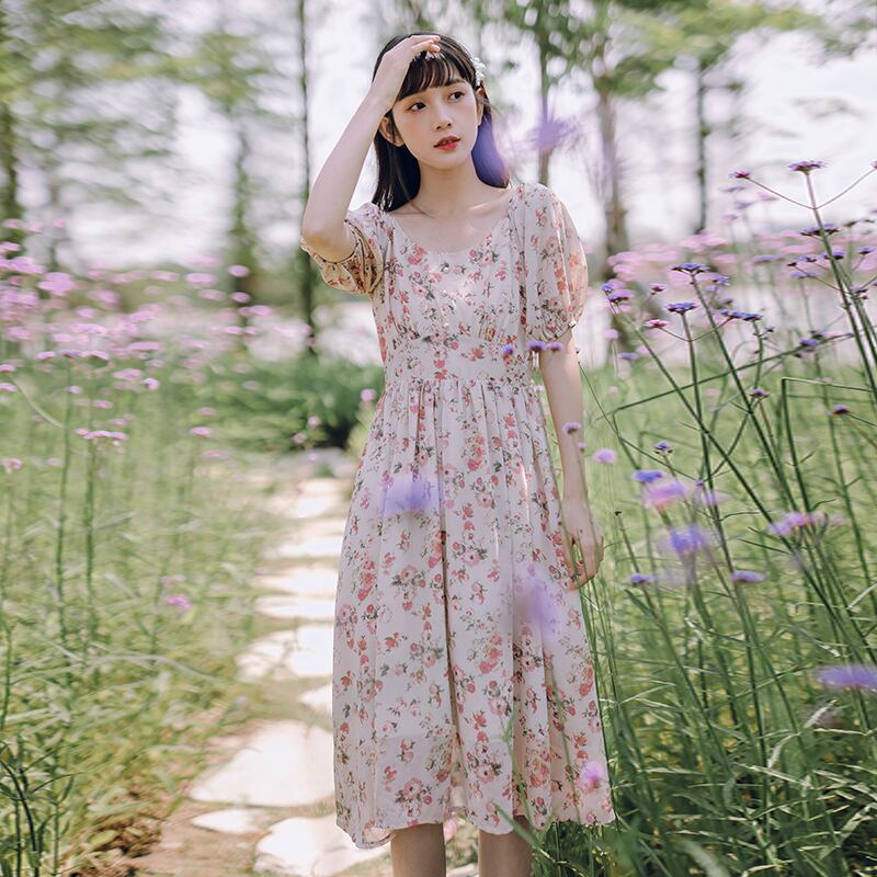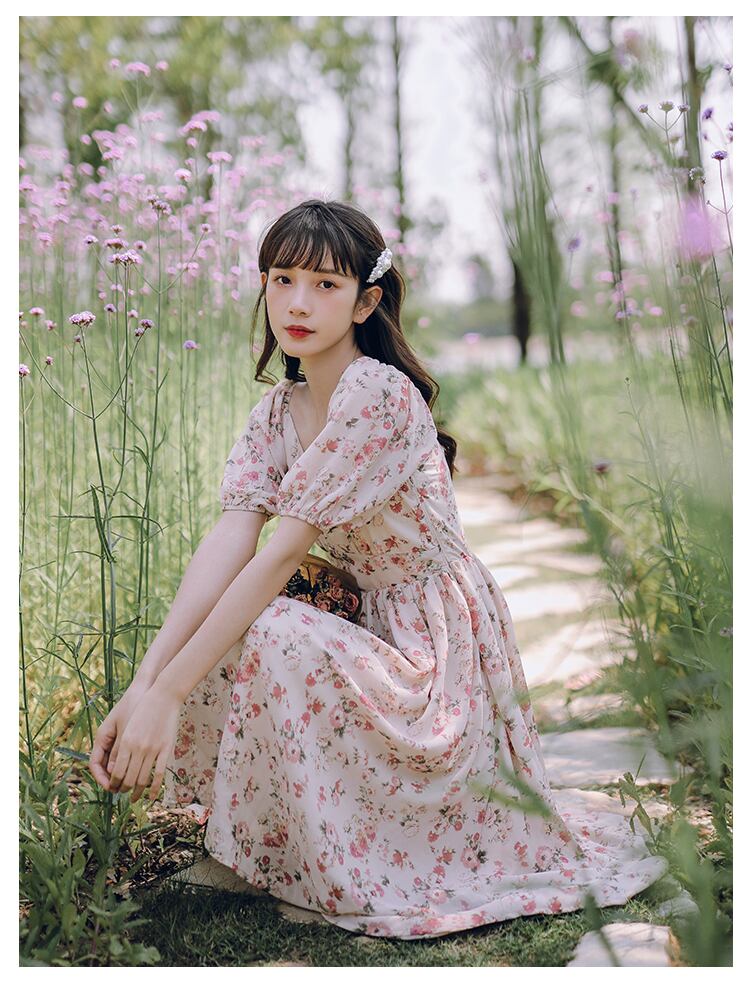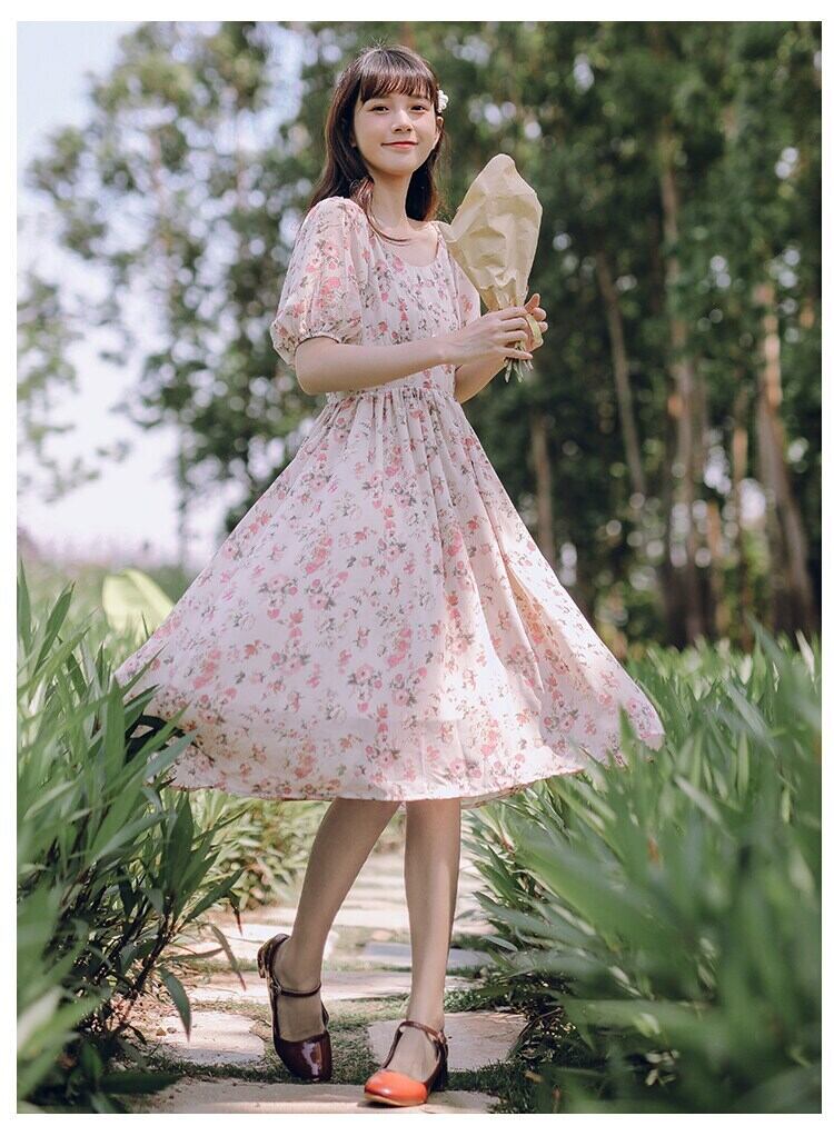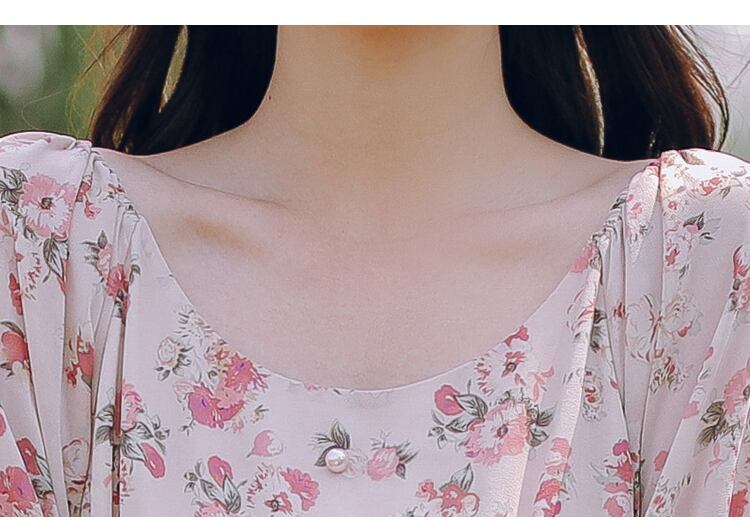 送料無料୨♥୧ サマーレディースAラインドレス フローラルプリントスリーブシフォン 大人ガーリー スウィート キュート カジュアル 夏物 花柄 Oネック AOS52701508156