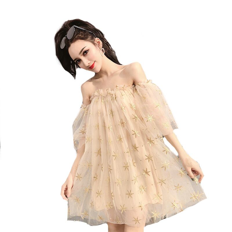 送料無料୨♥୧ サマーレディースミニドレス オフショルダーメッシュプリントショート 夏物 AOS53566553413