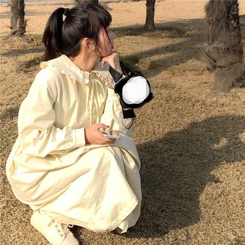 送料無料୨♥୧ スプリングオータムレディースミディドレス カラールーズスリーブ コットン 大人ガーリー スウィート キュート カジュアル 春物 秋物 AOS4415096460