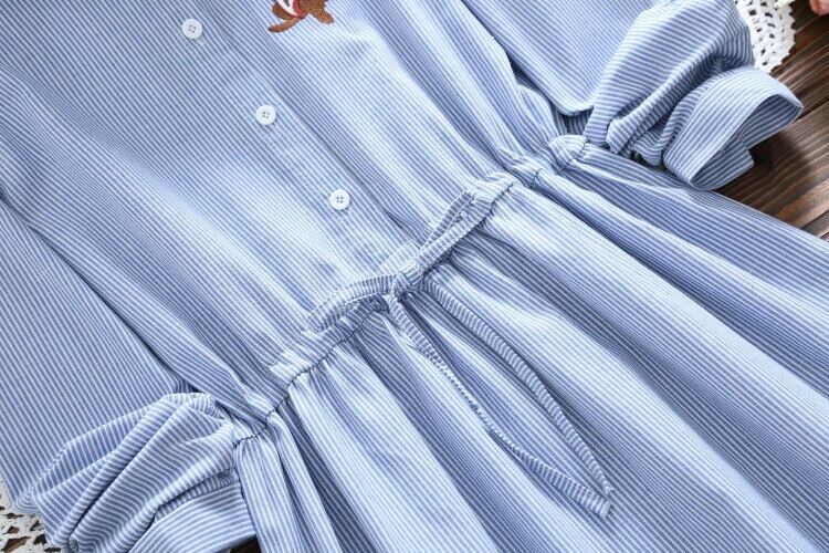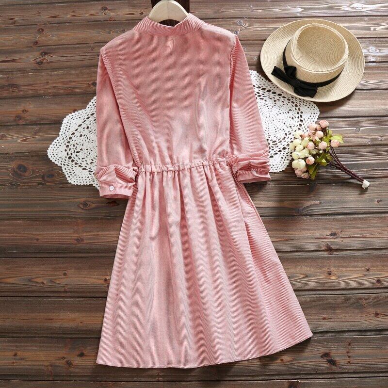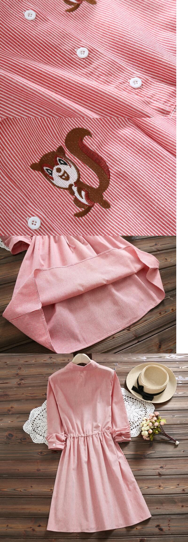 送料無料୨♥୧ オータムスプリングヴィンテージドレス ブルーレッドストライプ刺繍長袖スリーブ ロング 大人ガーリー スウィート キュート カジュアル 春物 秋物 ビンテージ AOS17637231415